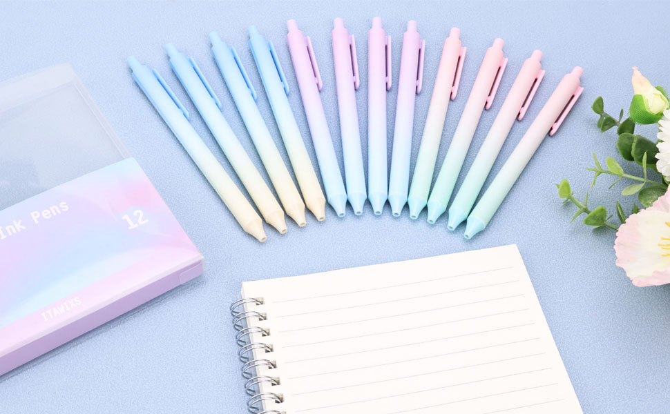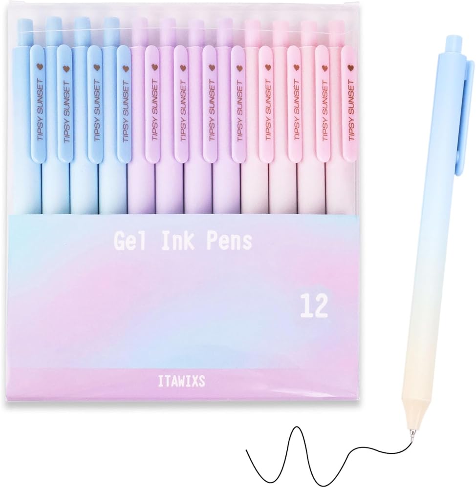 ITAWIXS 12Pcs Pastel Shifting Gel Ink Pens, 0.5mm Black Ink Fine Point Pens, Smooth Writing, Cute Aesthetic Retractable Pens for Journaling Taking Notes School Office Home