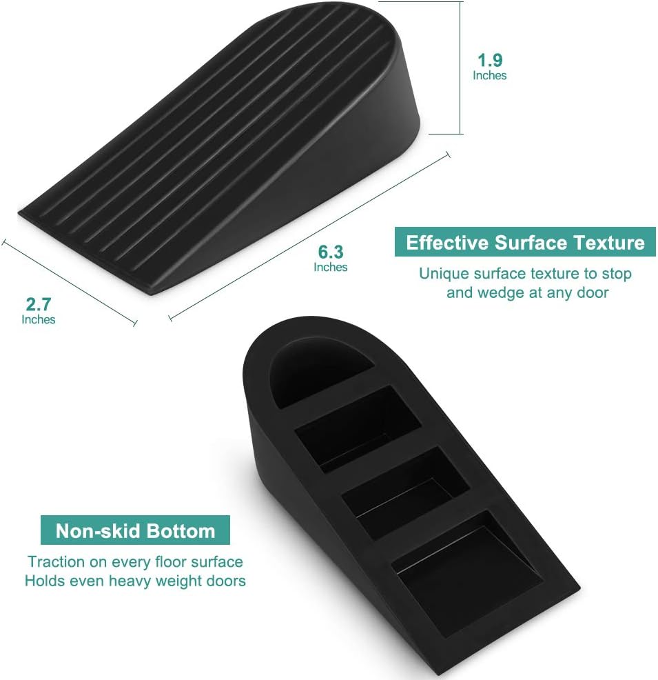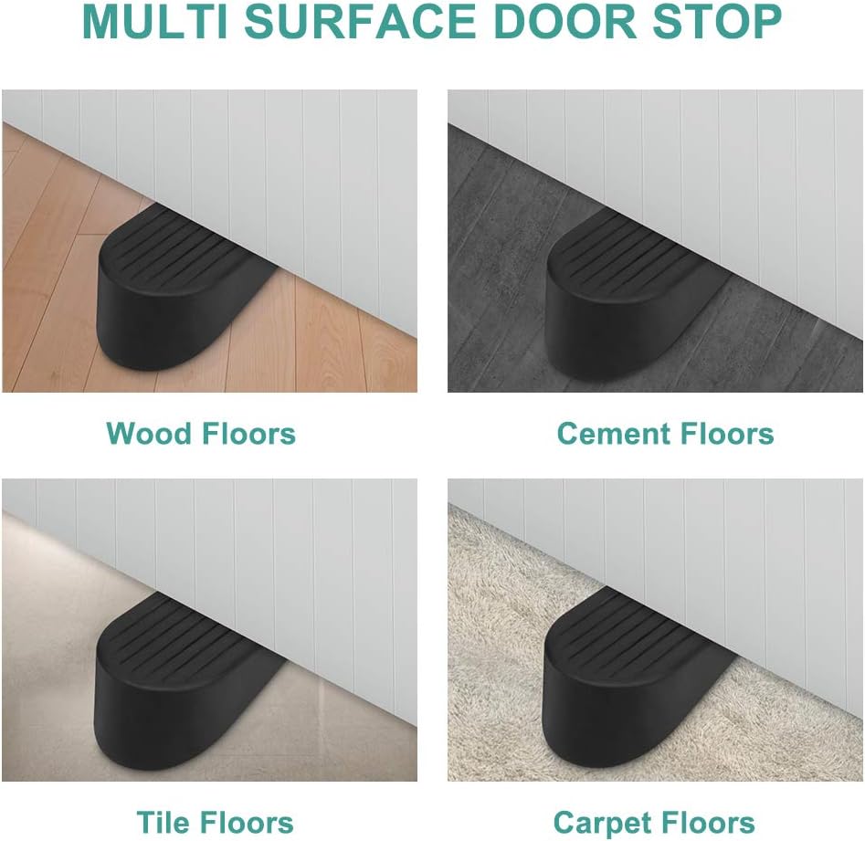 Safe&Durable:Our door stoppers are safe for kids and pets,non-toxic,it will keep the door open ,wouldn't have any injuries from a slamming door.The solid construction makes it more durable