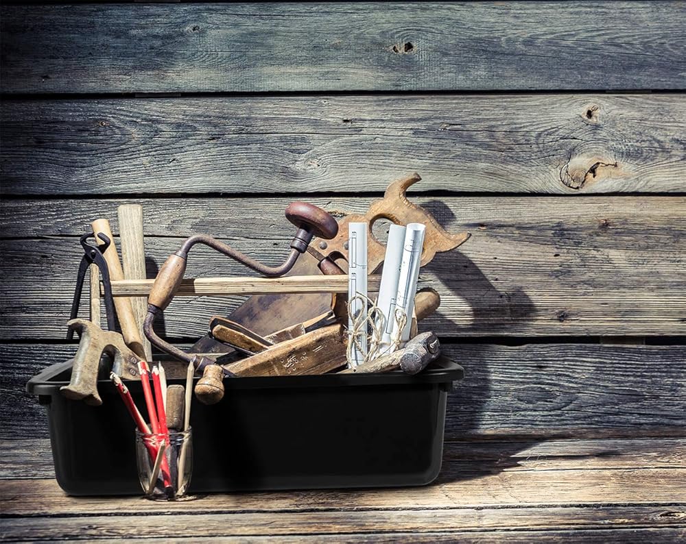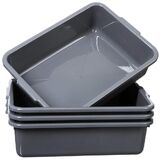 4-Pack Commercial Bus Tubs 8 Litre, Black Plastic Bus Box/Tote, Bus Wash Dish Basin Pans