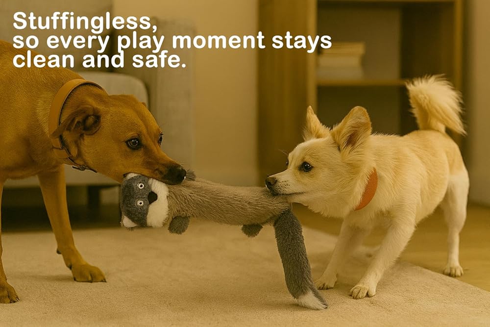 NO STUFFING, NO MESS: Our new set of animal character crinkle toys, is now stuffingless, which means no mess to clean up.