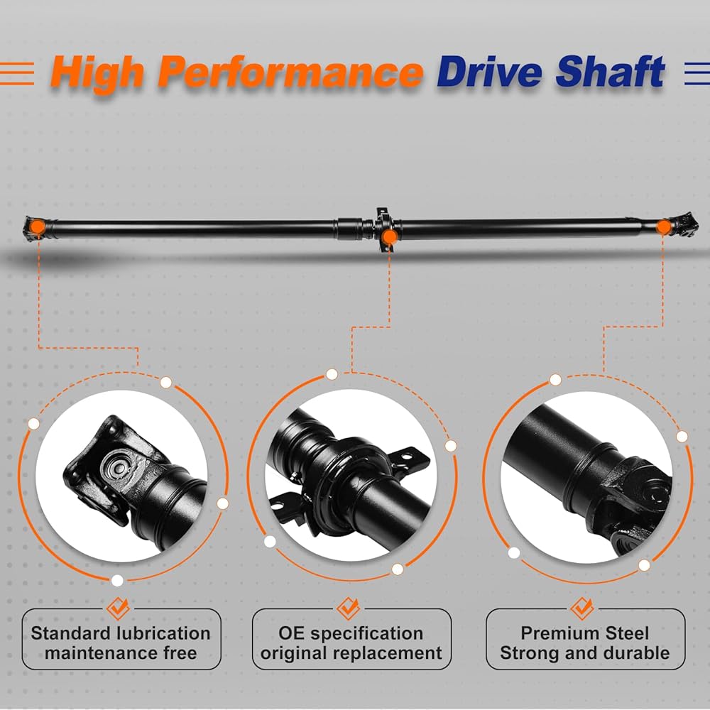 【Excellent Performance】Drive shaft has reached pre-balance and high temperature grease has been applied to the slip yokes & u-joints are ready to installed. Effectively reduce noise, provide you with a comfortable driving environment.