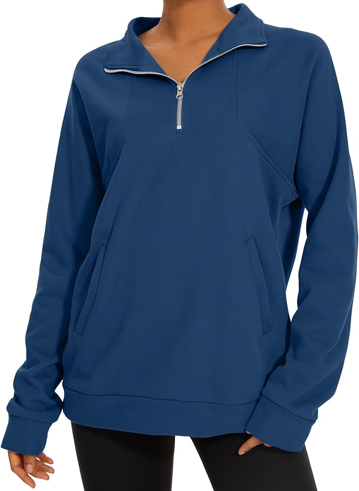 Feature: Half zip up pullover women, two pockets, long sleeves, dropped shoulder, solid color, ribbed knit hem and cuffs, oversized, fleece lined, relaxed fit pullovers, casual Y2K style.