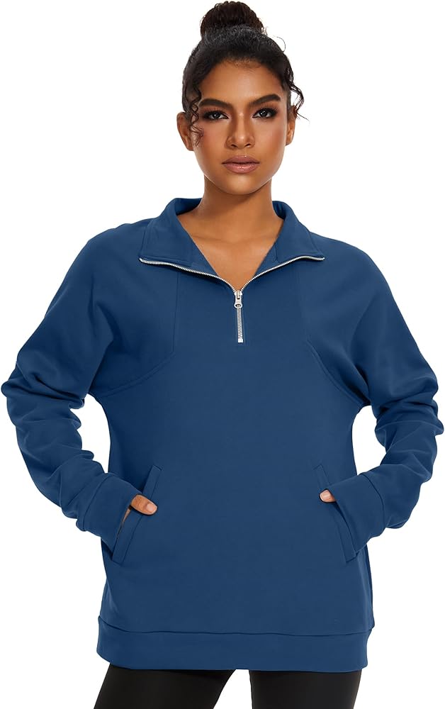 Material: Women's quarter zip pullover, made of high quality, lightweight, breathable,super soft and fuzzy fleece lined material, these materials are thick and comfortable, keep you warm in the fall and winter.