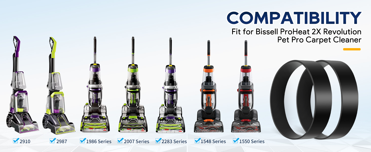 【COMPATIBILITY】 These proheat 2x revolution belts compatible with Bissell proheat 2X revolution pet pro carpet vacuum cleaner 1986, 2987, 1548F, 2007, 2007P, 2283, 22839, 22837, 15489, 2910, 1548, 15481, 15501, 15506、15507, 2987, 2806, 28062, 28068, 29878, 29879