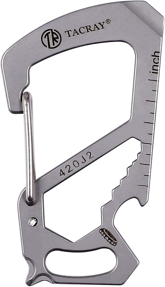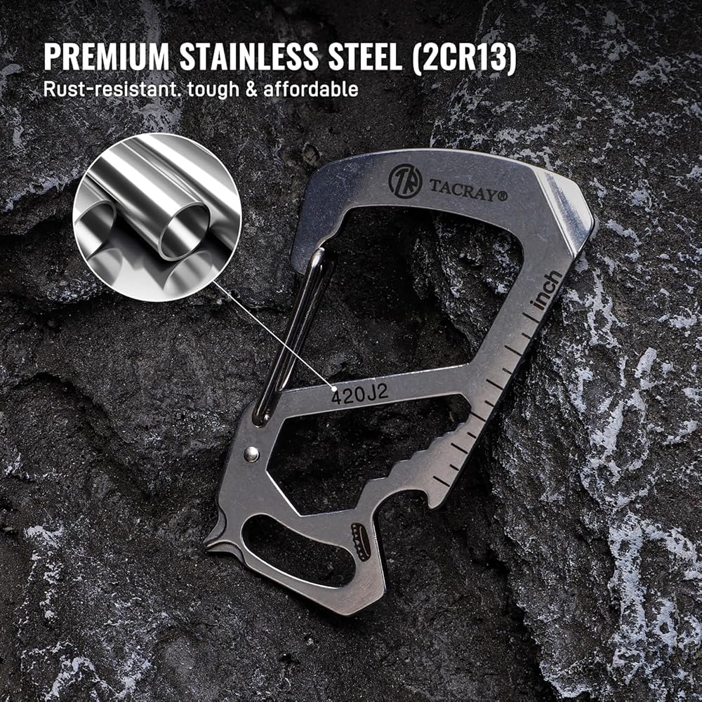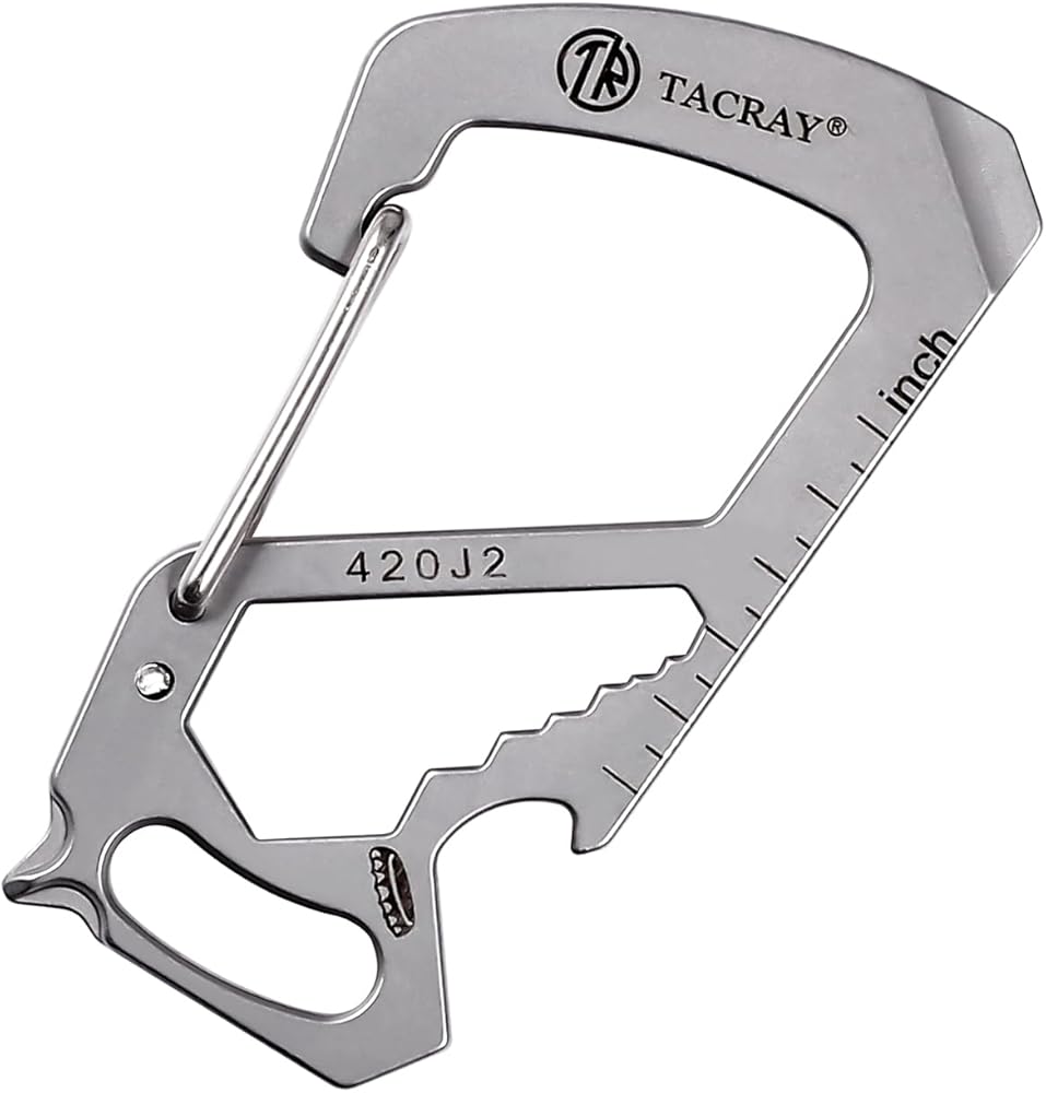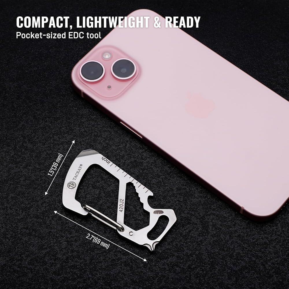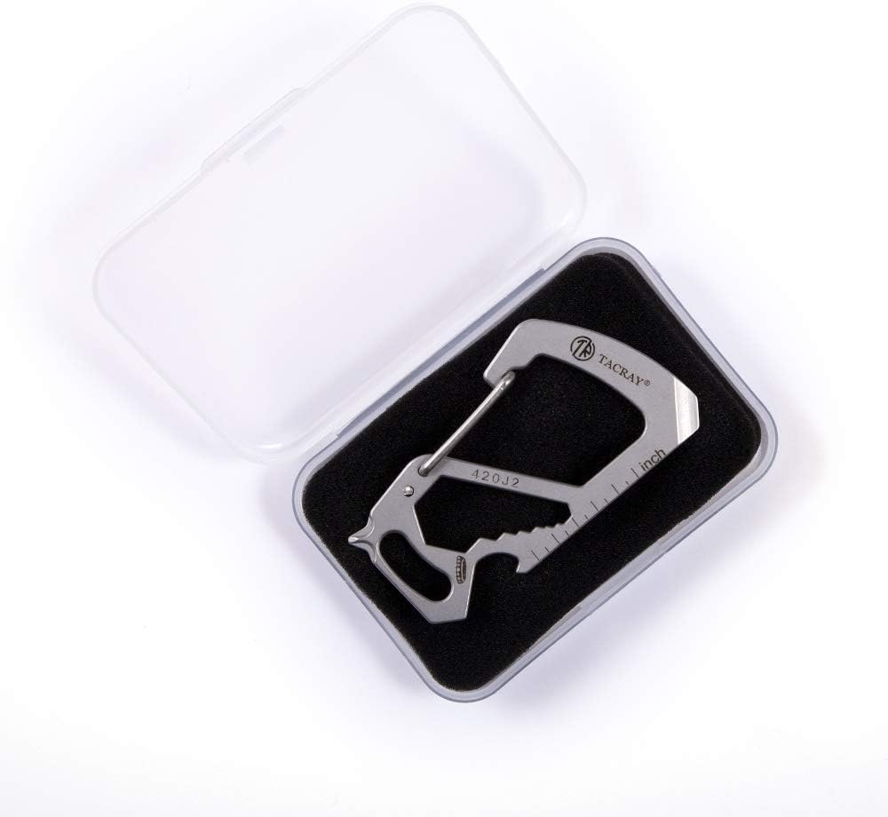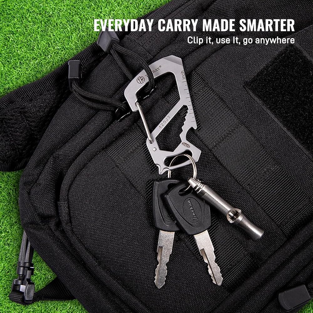 TACRAY Compact EDC Keychain Clip, Small Carabiner Keychain Holder, Anti-Lost Quick Released Backpack Hook with Multitool as Bottle Opener and Flat Screwdriver