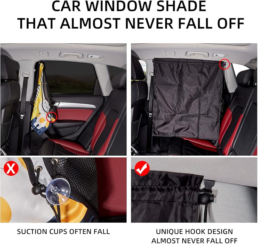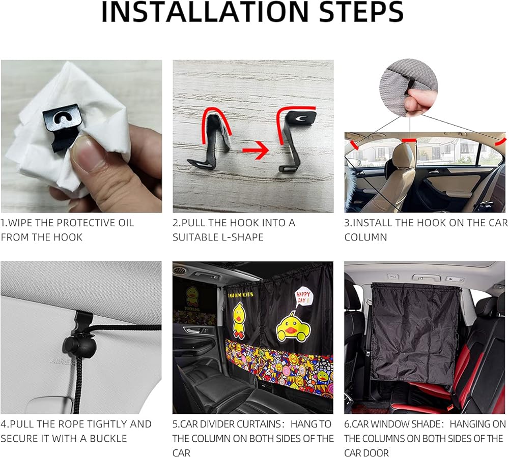 【Car Window Shade】Cut the rope of the car divider curtain from the middle, it will become 2 pieces of car window shades.And we are equipped with 1 more pair of hooks and buckles.