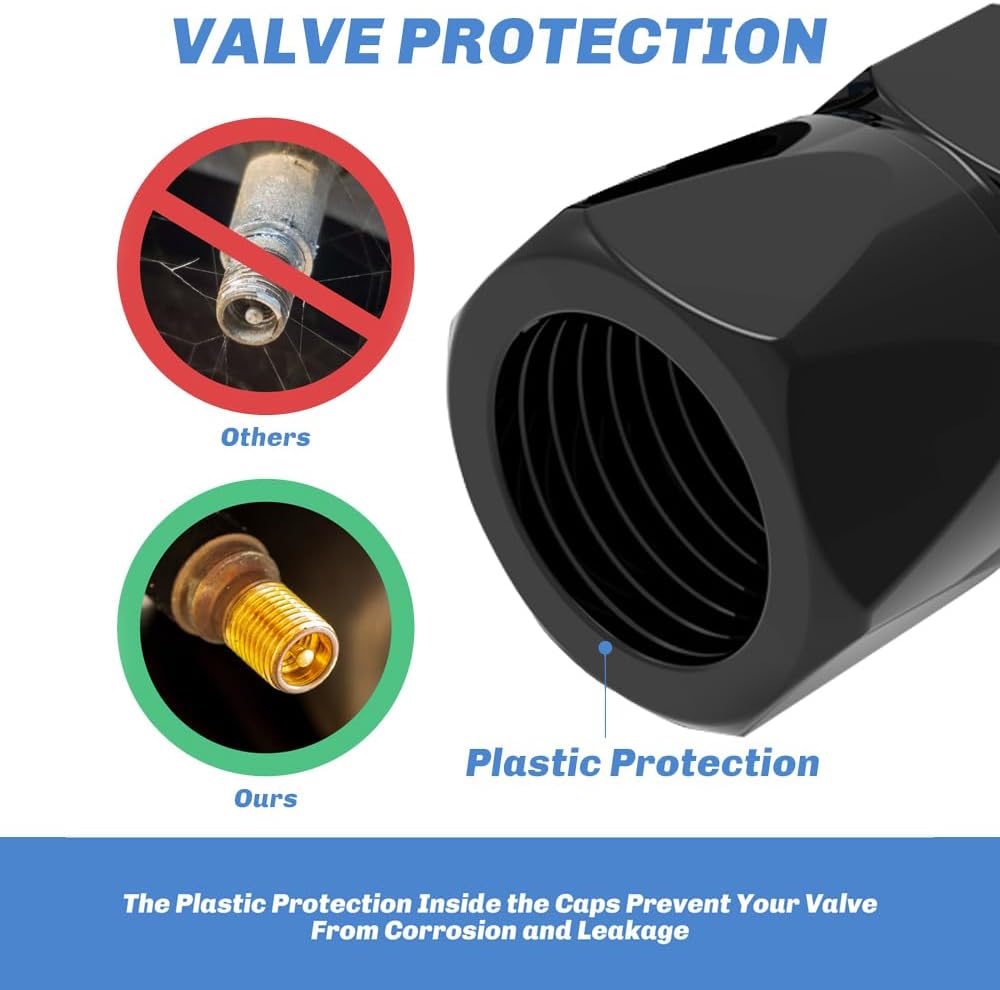 Easy to Use: These tyre valve caps are adaptable to all series of car tires. Simply screw it on and your will get it done within seconds.