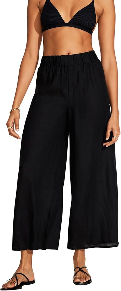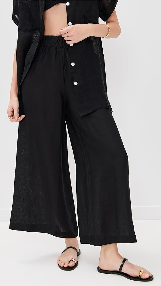 Linen, but make it chic. These high waisted pants offer a wide leg with an elastic waist for an easy, flattering fit – every time. Made from 100% Linen. This breathable material is earth friendly . We recommend sizing down for a more silhouette fit.