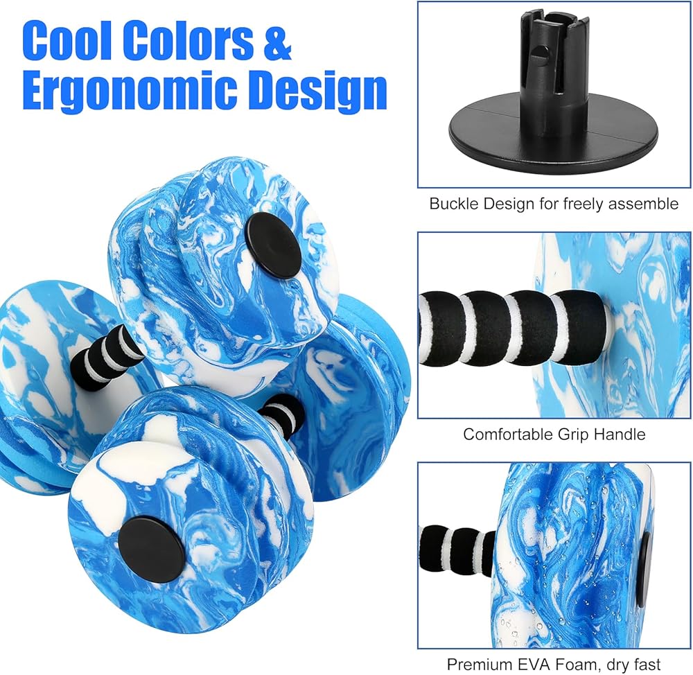 Perfect Aquatic Fitness Tool - The aquatic dumbbells for water aerobics is designed in Cool Colors & Ergonomic Design. EVA foam cushion padded around the hand bar, offering a more comfortable & anti-slip grip. Large diameter makes it more easier to use. Buckle Design is for freely assemble .
