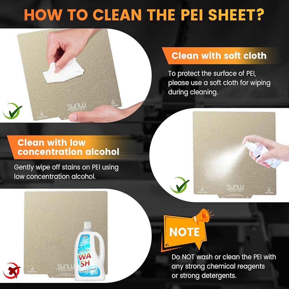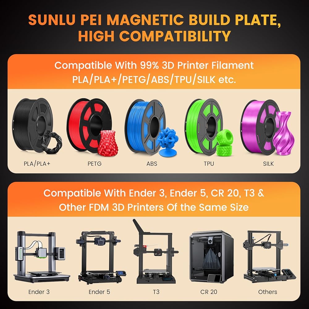 SUNLU PEI Sheet, Magnetic 3D Printer Bed with Frosted Textured, 235x235mm PEI Plate Flexible Printing Surface, 2 PCS PEI Sheet(Black+Gold)+1PC Base Sticker Sheet
