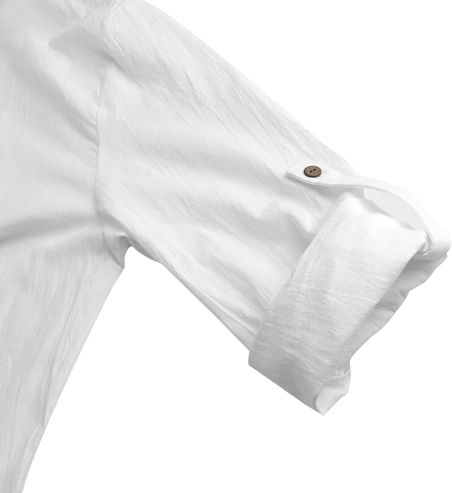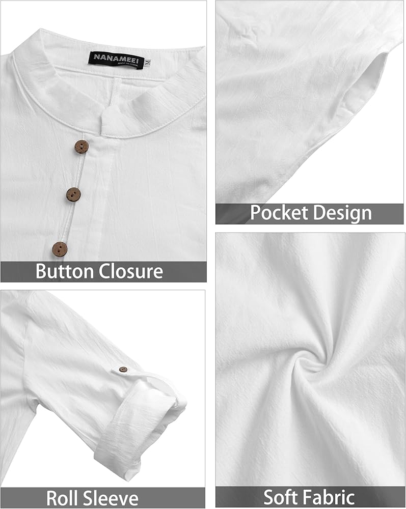 Features: This men's long kaftan shirt has a loose and comfortable design, a casual henley neck button-down design, long sleeves and rolled-up sleeves, and pockets on both sides for good storage of keys and mobile phones.
