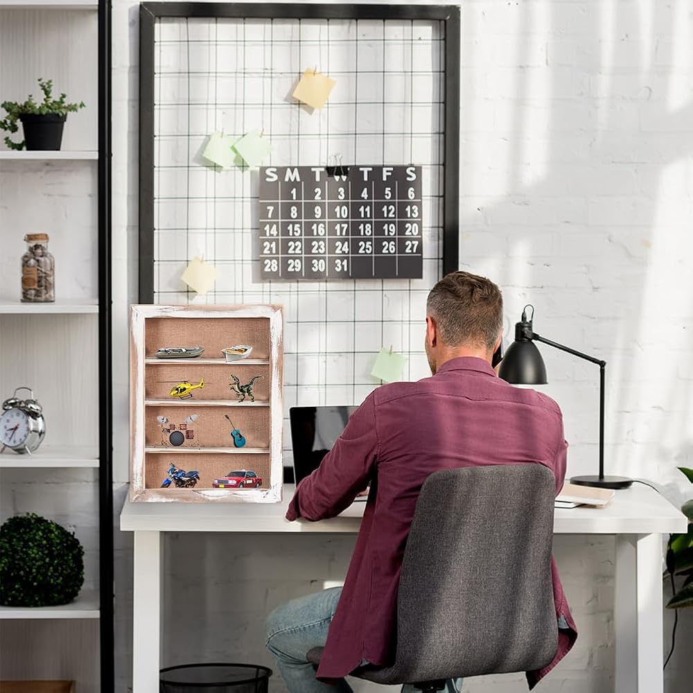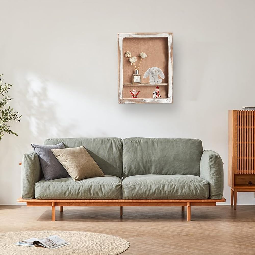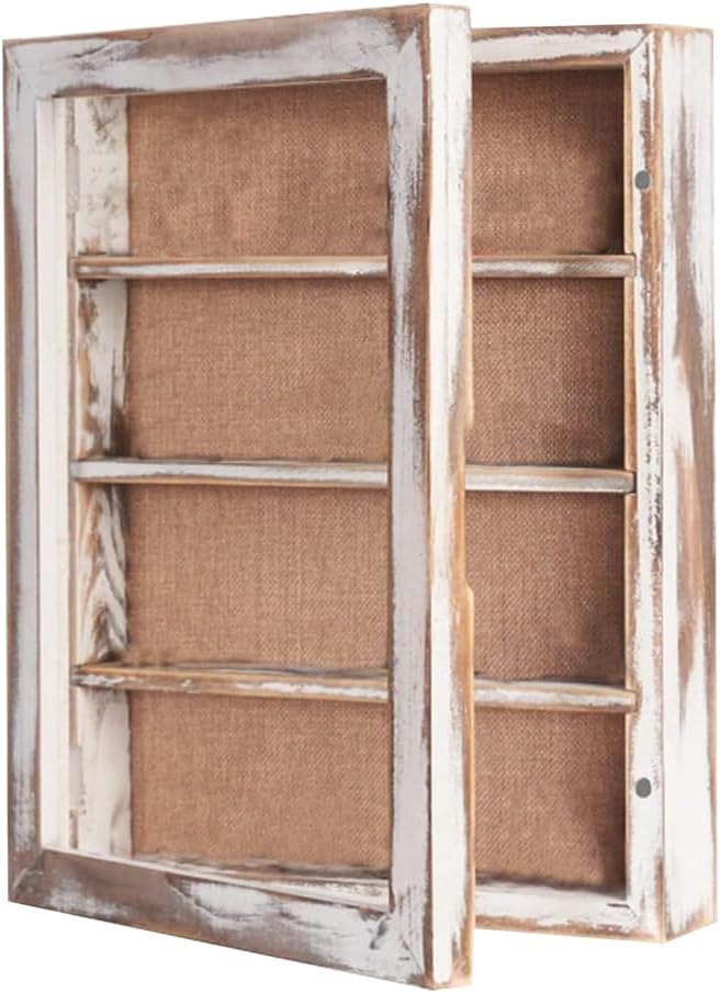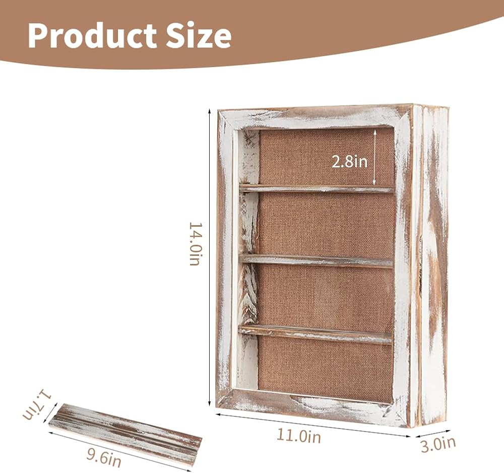 The vintage shadow box with shelves is perfect for displaying miniatures, photos, flowers, memorabilia, graduation, antique, awards, medals, baby clothes, pet collar, wedding bouquet, military, tickets, wine corks, beer cap collections, trinkets and more. A great way to display precious memories.