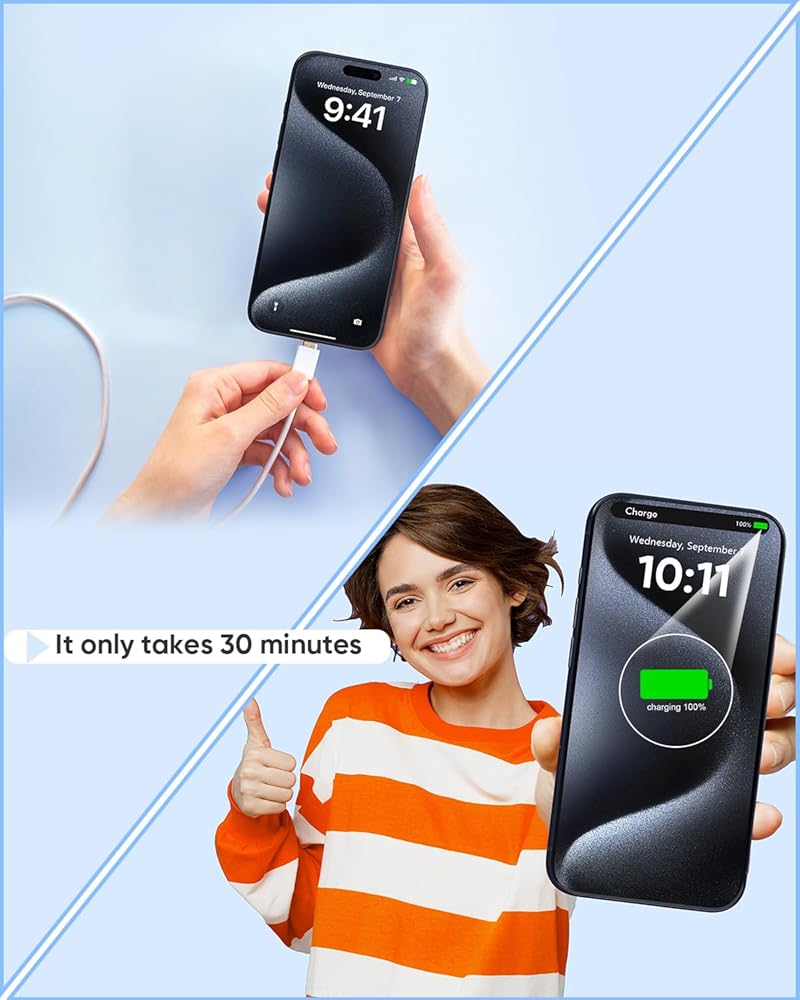 This USB-C Wall Charger offers full protection against short circuits, overvoltage, overheating, and overcurrent while charging devices. Faster charging speed under safe conditions.