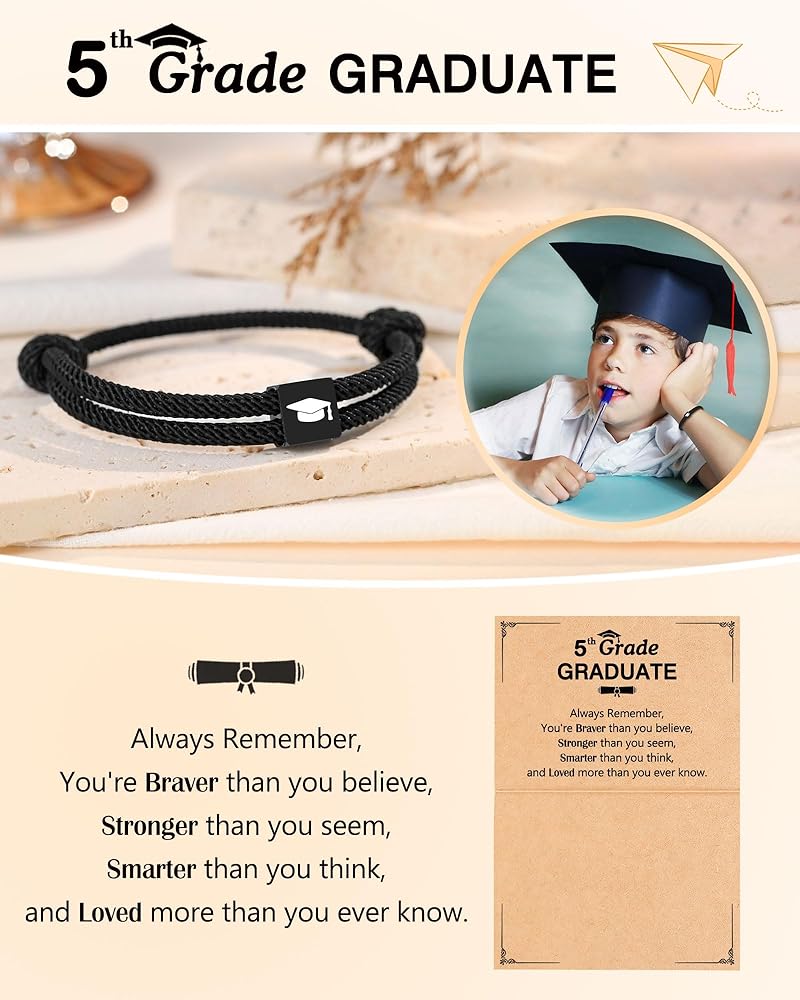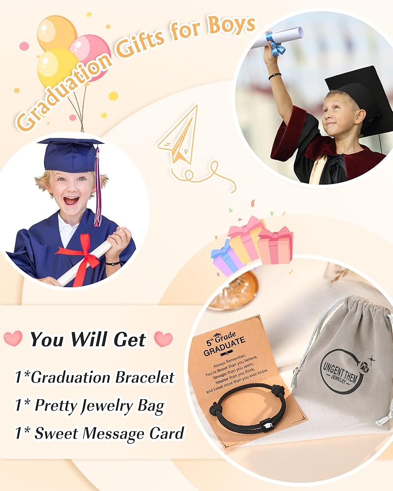 【Kindergarten Graduation Bracelet】-- This graduation cap bracelet makes a meaningful gift with a graduation card: "Always remember you're braver than you believe, stronger than you seem, smarter than you think, and Loved more than you ever know." Celebrate your boys kindergarten graduation and express your love and encouragement.