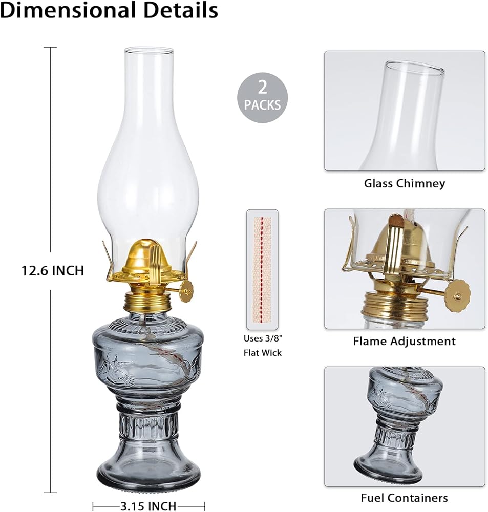 Oil Lamp Size: the kerosene lamp is 12.6 x 3.15 inch, the right size can light up a large area in your home, and will not occupy too much space of your table, you can use with confidence.