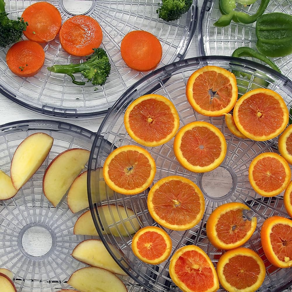Introducing our Electric Countertop Food Dehydrator, a revolutionary kitchen appliance designed to transform the way you preserve and enjoy your favorite foods. Scientifically tested to enhance food preservation, this multi-tiered marvel offers an easy, single-button operation for nutritious results every time. Say goodbye to cumbersome methods of food dehydration; our appliance provides a faster and more efficient alternative, effectively removing moisture content to prolong shelf life. With up to 97% retention of essential vitamins and minerals, this dehydrator ensures that your food maintains its nutritional value, making it a healthier choice over canning or freezing. Whether you're preparing healthy snacks for all ages or drying foods to reduce spoilage, this appliance is your ultimate kitchen companion. Its stain-resistant and easy-to-clean design, coupled with a simple one-press button operation, makes it a hassle-free addition to any kitchen. Featuring (5) tier trays for enhanced air-flow and high-heat circulation, it accommodates a wide variety of foods including meats, fish, poultry, fruits, and vegetables. From oil-free veggie chips to homemade beef jerky, unleash your culinary creativity with our Electric Countertop Food Dehydrator.
