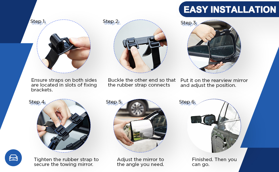 【Condition】2pcs extension mirrors for towing trailer that extends your field of vision. Manufactured with fine workmanship and high standard, 100% brand new and premium. Recommend that install the mirror extenders doesnot tighten the rubber strap directly by pulling, better loosen it slowly and then tighten it.