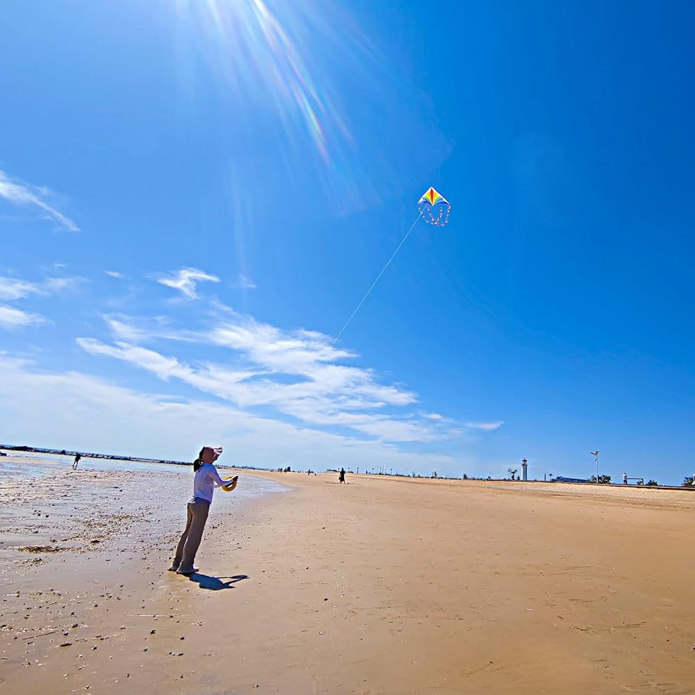This beach kite includes 1 triangular kite measuring 1.4 meter, along with 100m kite string handle equipped with connector and an assembly instruction card. This kite take off and soar the sky, delivering a unique visual experience.