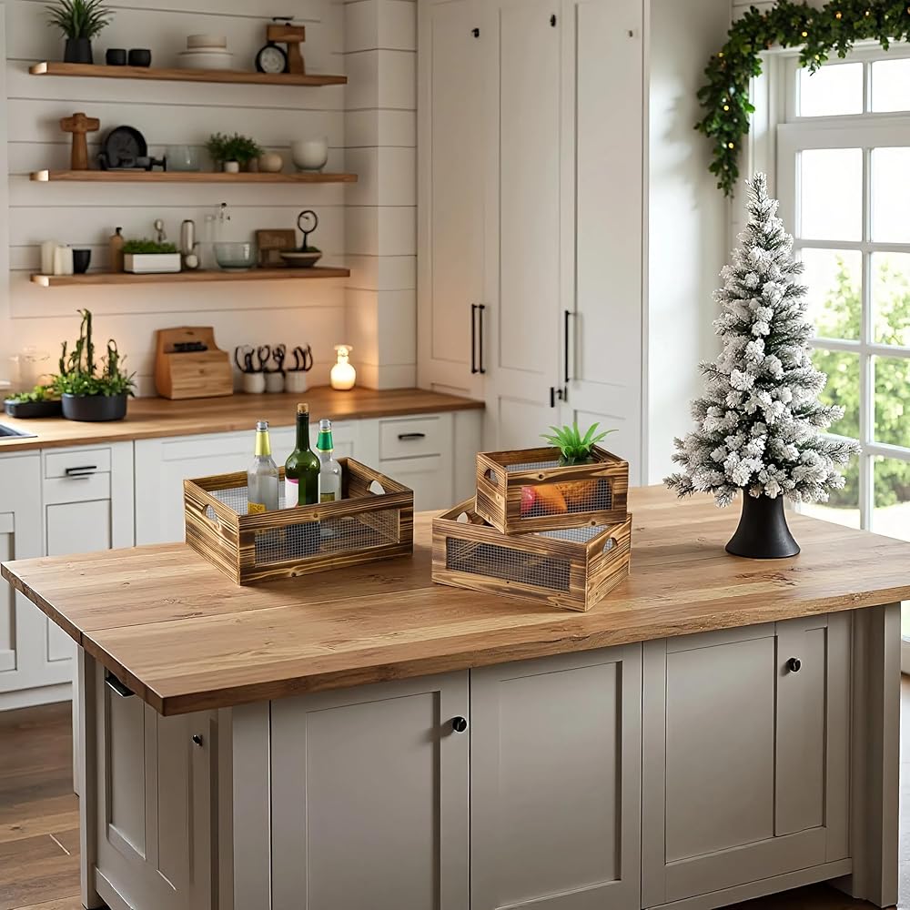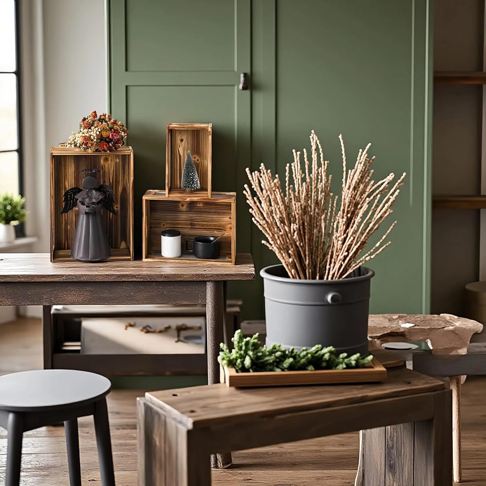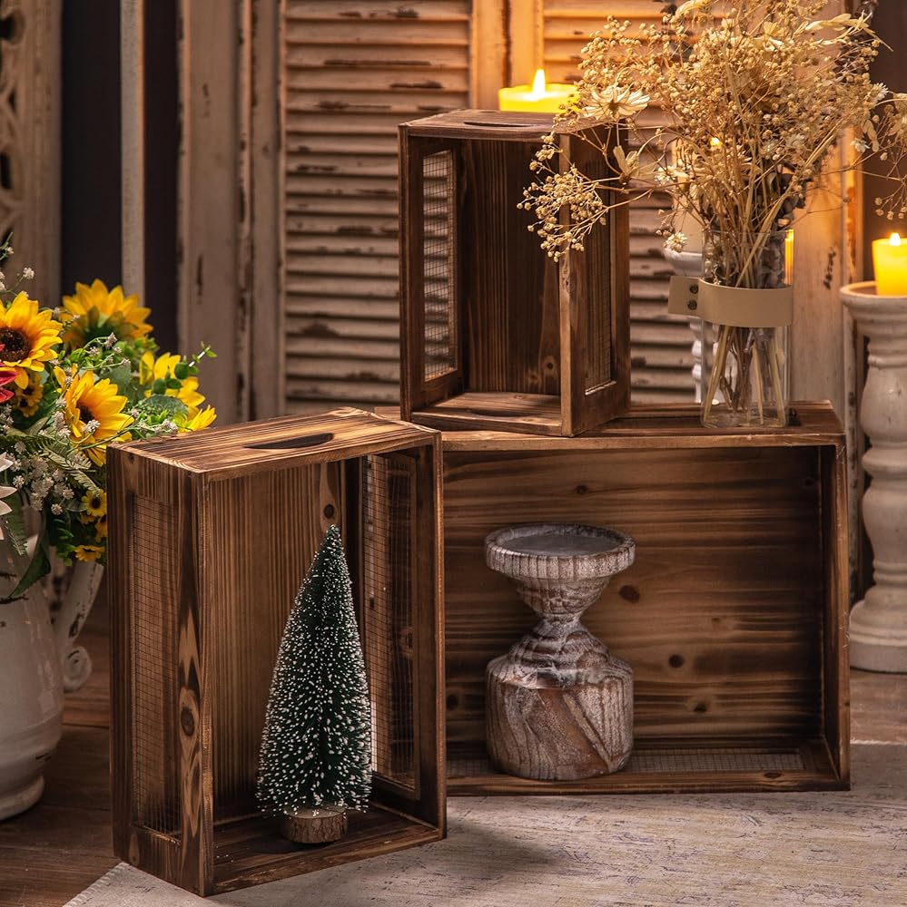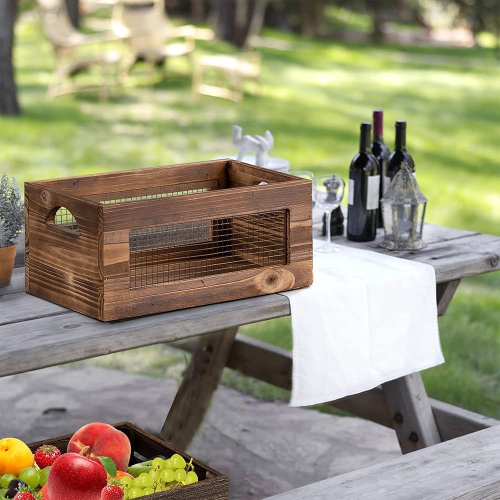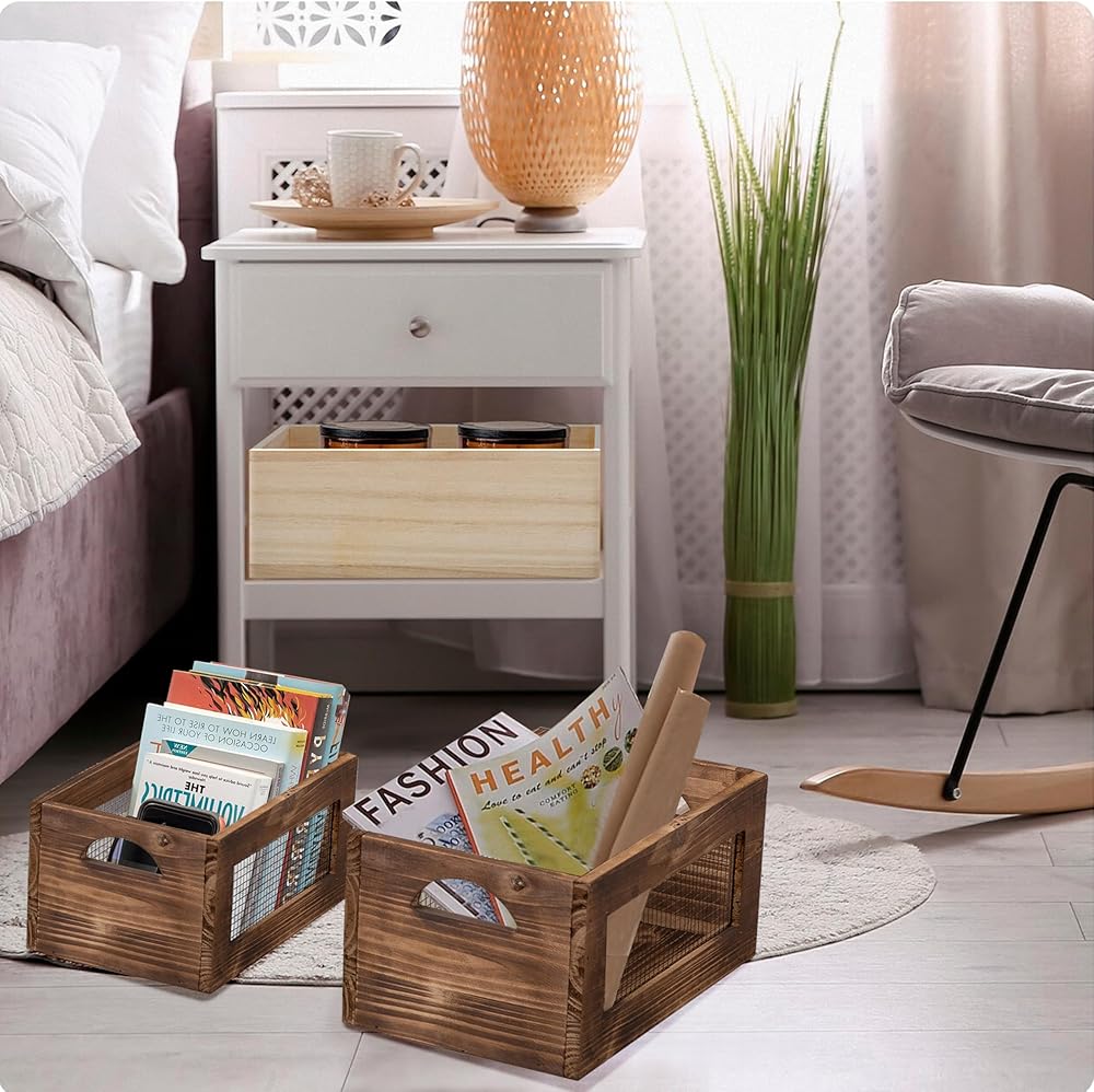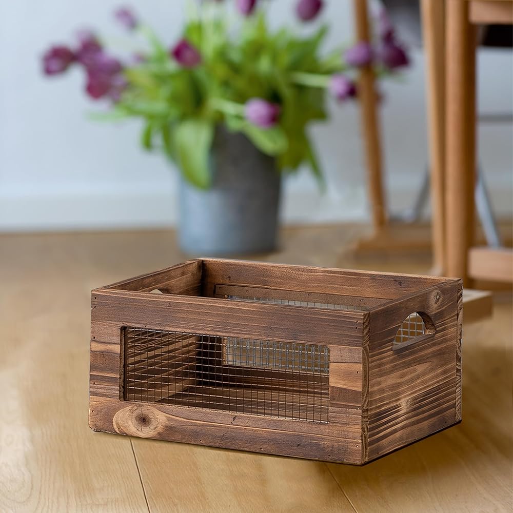[WORKS WELL IN ANYWHERE] Anywhere you want to add rustic home décor, these wood basket will complete the task successfully. Crates can be used to display potted plants, pottery, vintage books, wine, or other decorative items. Use these wooden crate box in your entryway, living room, kitchen, nursery room, bedroom, bathroom or home office.