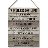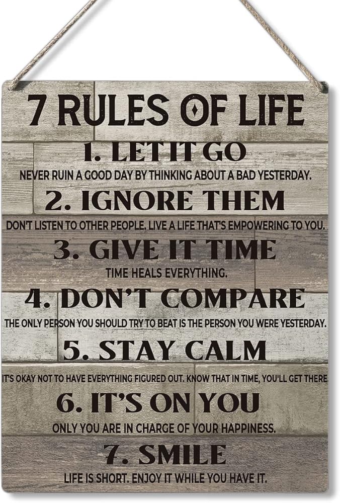 Qious Inspirational Gift Signs 7 Rules of Life Let It Go Ignore Them Give It Time Don't Compare Stay Calm Wooden Hanging Sign Rustic Art Wall Home Office Decoration 10 x 8 Inches…