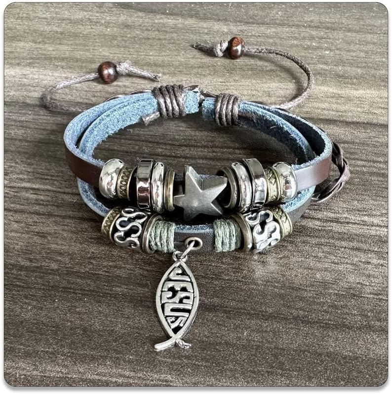 البازلاء مجوهرات بسيطة سبيكة حبة ستار معصمه مضفر متعدد الطبقات بو الجلود الرباط حبل سوار