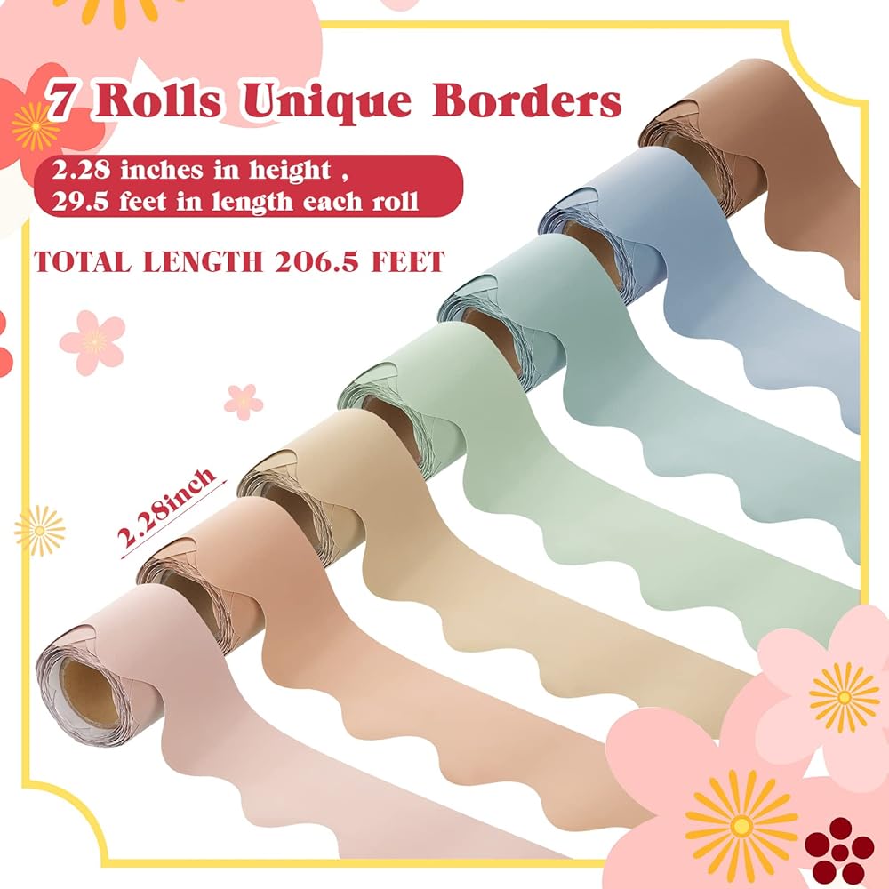Long Length: each bulletin boarder trim measures about 29.5 feet/ 9 meters in length and 2.25 inches/ 5.72 cm in width; And you will receive 7 rolls of classroom bulletin board borders, the total length is about 206.5 feet/ 63 meters, long enough for your daily use and replacement