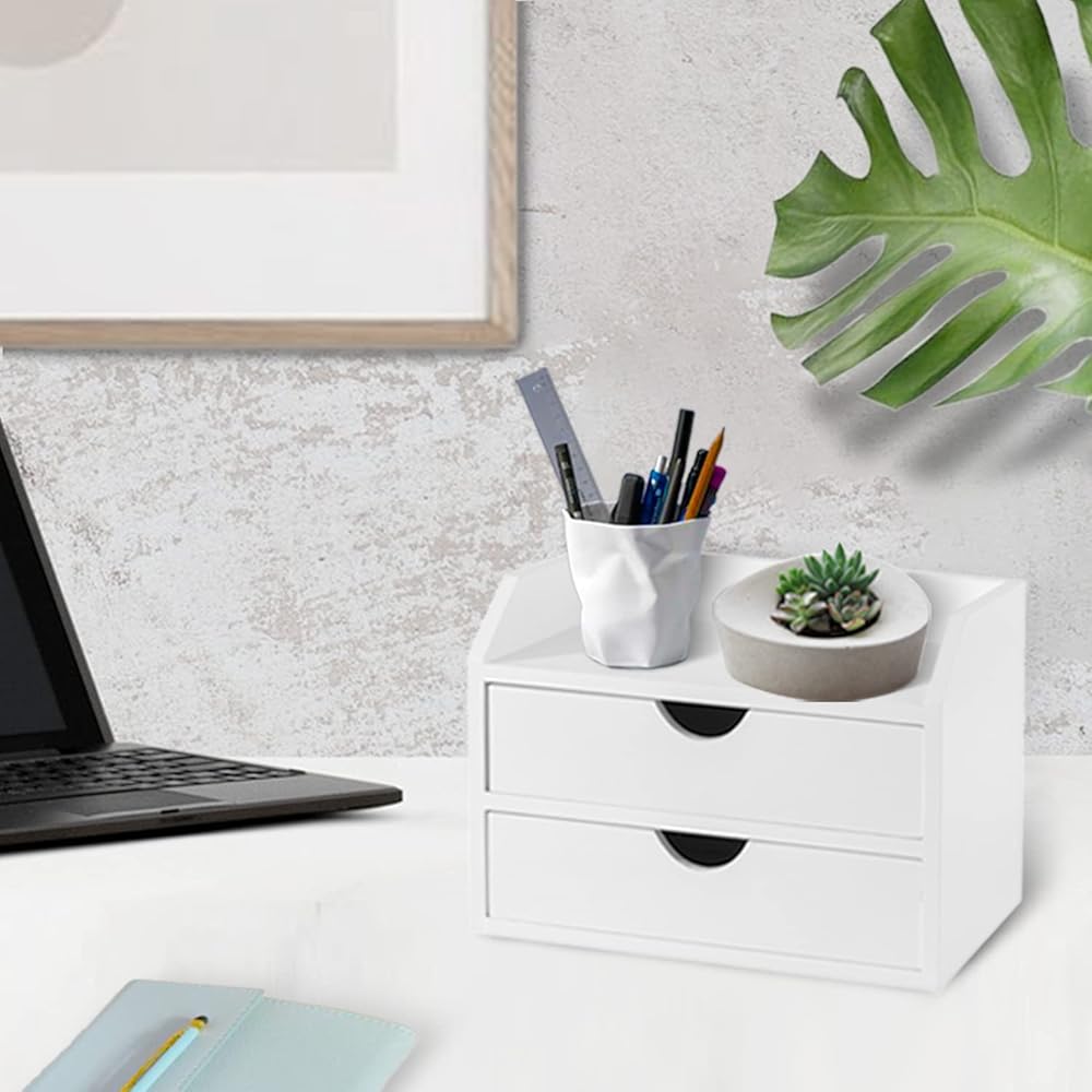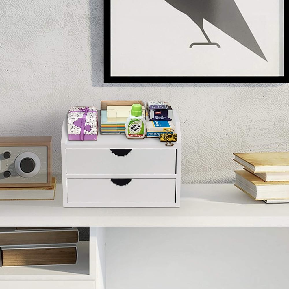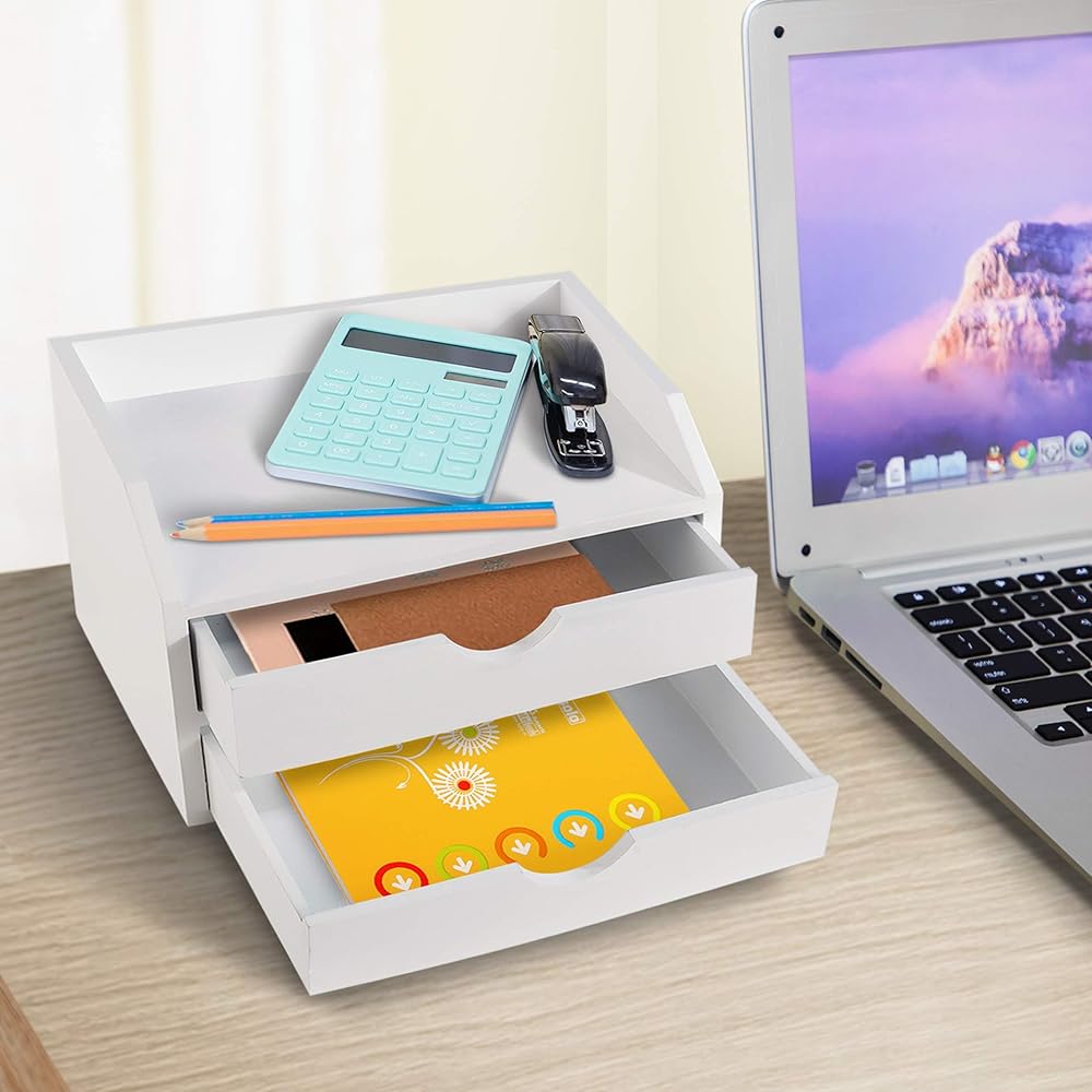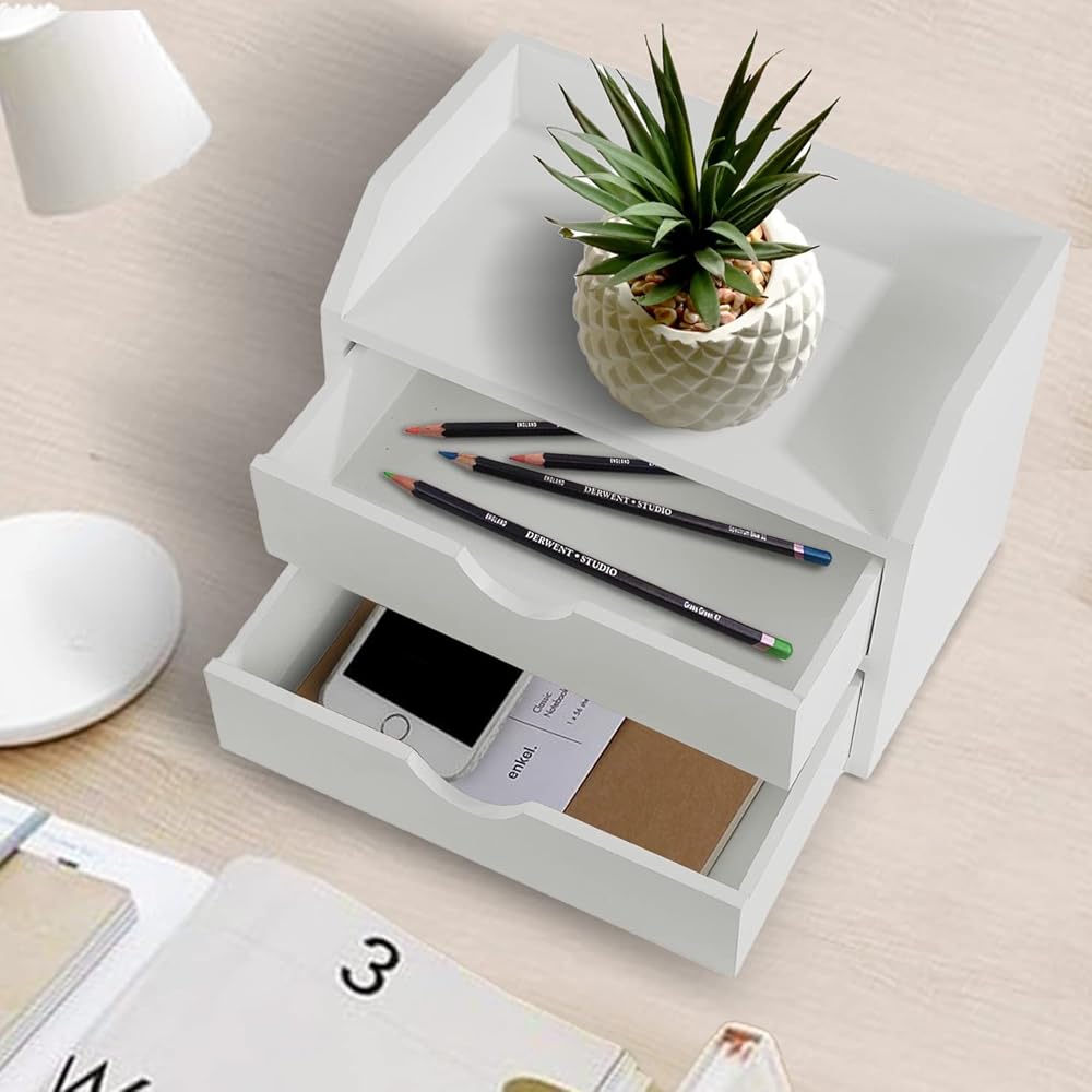 MATERIAL: Made of high quantity medium density fiberboard, this desk container has a unique style, concealing all your accessories. This white desk organizer will look great anywhere and makes an excellent small desk storage item
