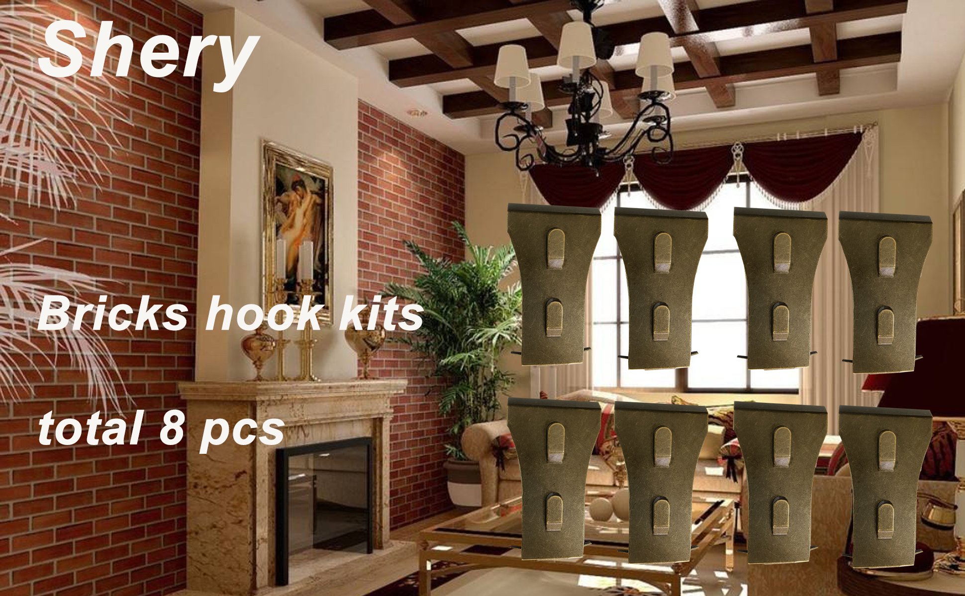 Brick hooks: Our package contains 8pcs brick clips. It is bronze color and is made of iron. its size is 37.5*66.5mm / 1.5*2.6 inch.