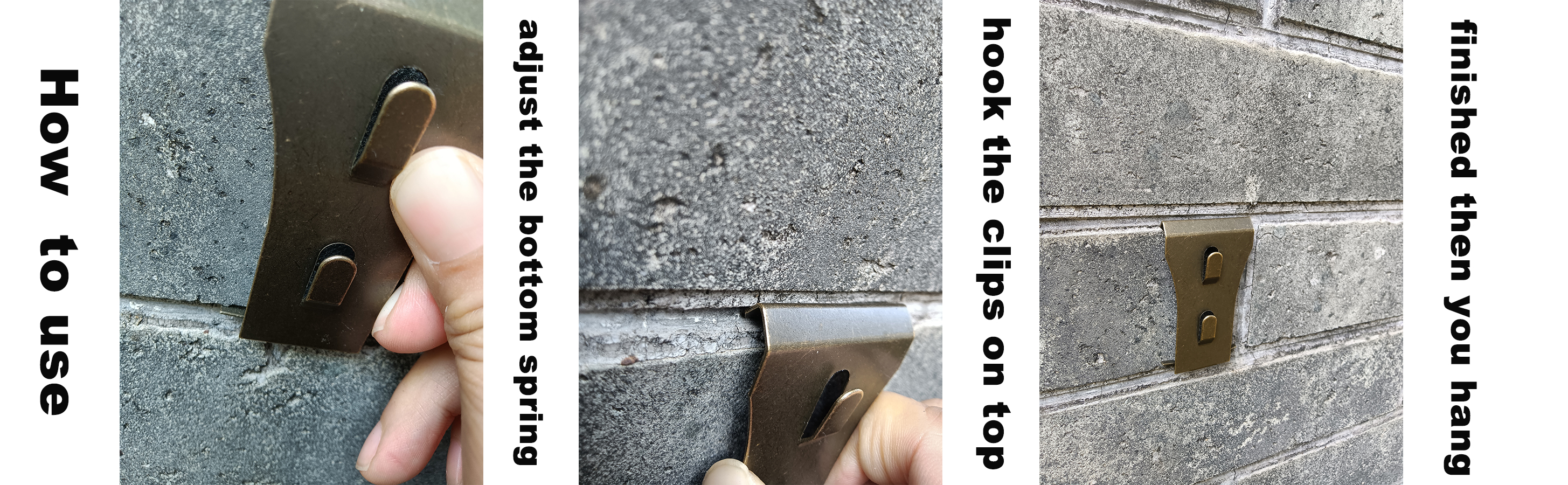 Easy installation: Installation of our wall clip is quick and easy. Simply align the spring-loaded side of the hook with the bottom of the brick and push the clip up until the upper teeth are firmly seated on the top of the brick. brick clips are ideal for hanging pictures.