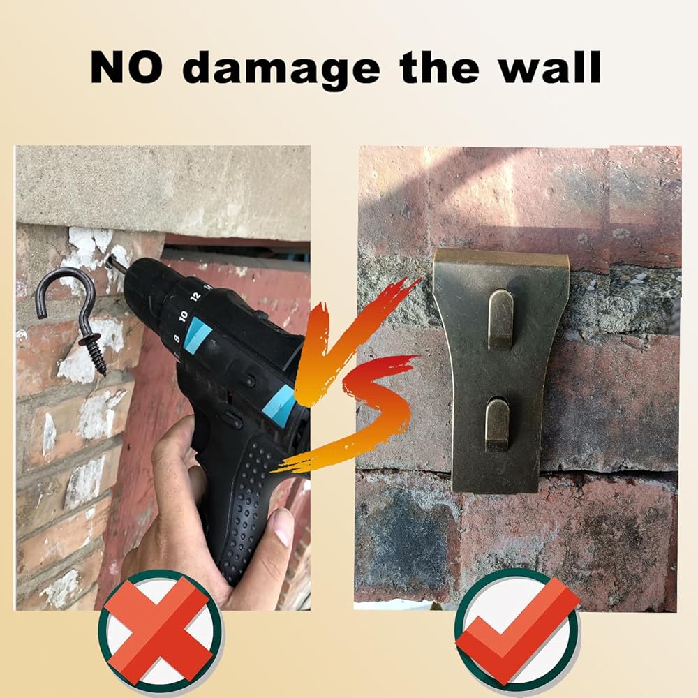 High quality: Our metal brick wall clips are designed for wall hanging use and are constructed from sturdy tempered spring steel. They are highly durable and capable of withstanding heavy-duty tasks. with these wall clips, there is no need for drilling or causing any damage to the wall. They have a maximum weight capacity of 30 pounds, making them suitable for securely hanging various items.