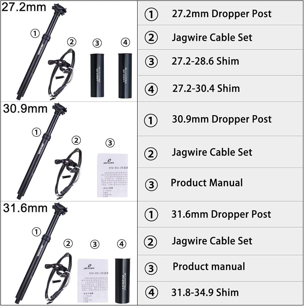 GANOPPER Dropper Seatpost for Mountain Bike, Aluminum, Black