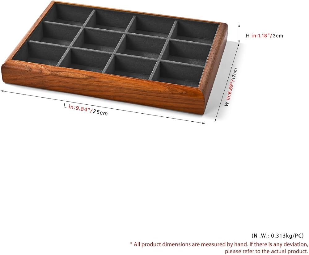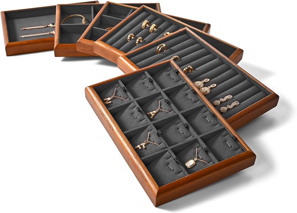 ★Application:This solid wood jewelry tray is great for personal use at home,which can be stacked on your drawer or dresser to save space; And perfect for a countertop jewelry display in stores or trade shows. Easily mobile the tray from the showcase to allow customers to view your jewelry from the counter-top