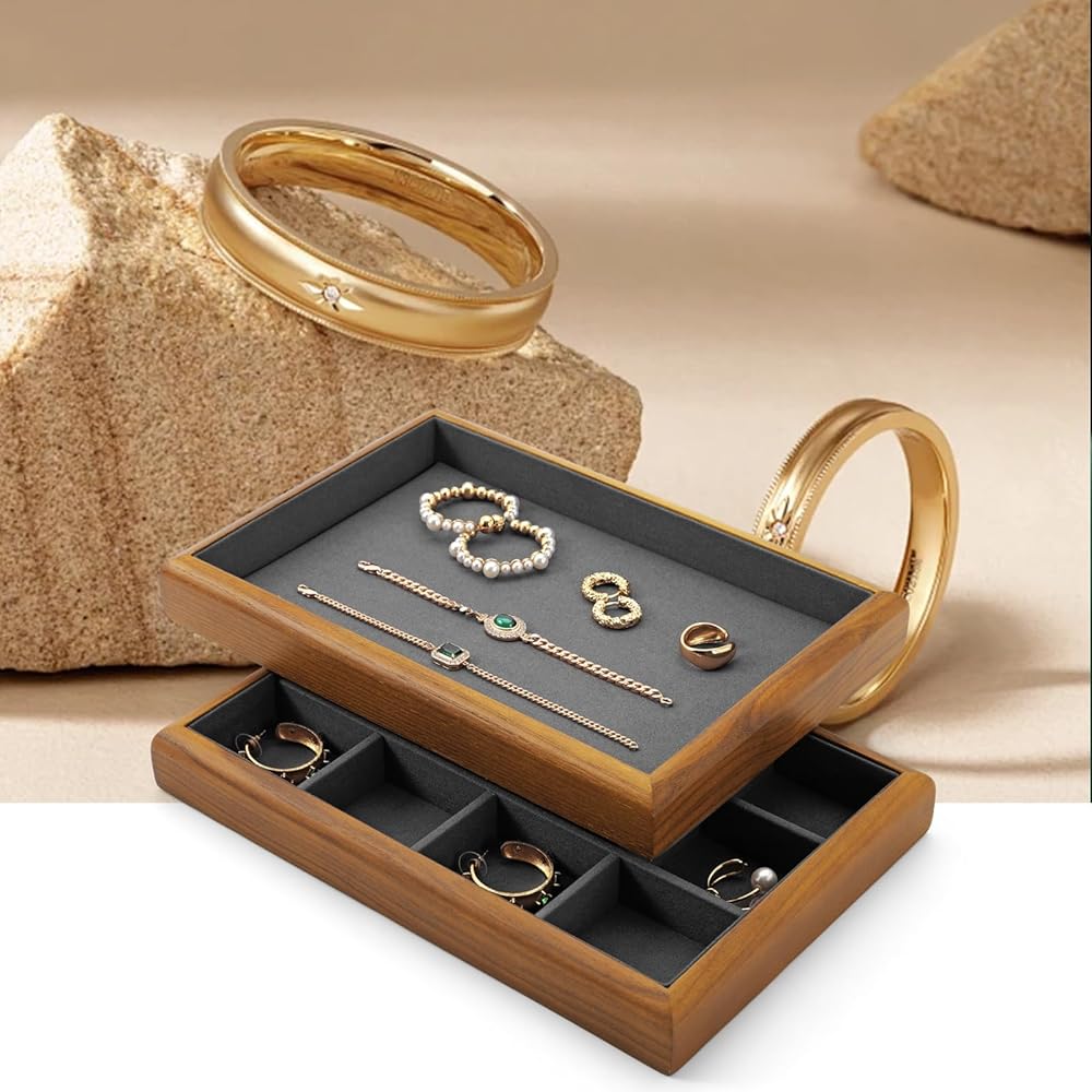 ★Material: The inner lining of the jewelry tray is made of high quality microfiber, which prevents knots or scratches on the jewelry, and the outer shell is made of solid wood with a clear wood grain, which is smoother and sturdier than old wood.