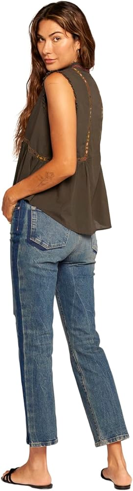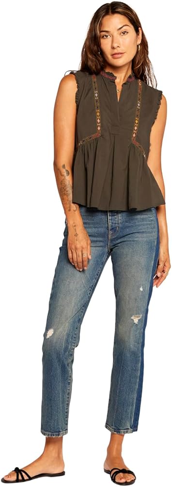 The Solace is a sleeveless cotton voile blouse with feminine ruffle trim, embroidered details and an easy, relaxed fit. Wear with your favorite jeans, denim shorts or wide leg linen pants.