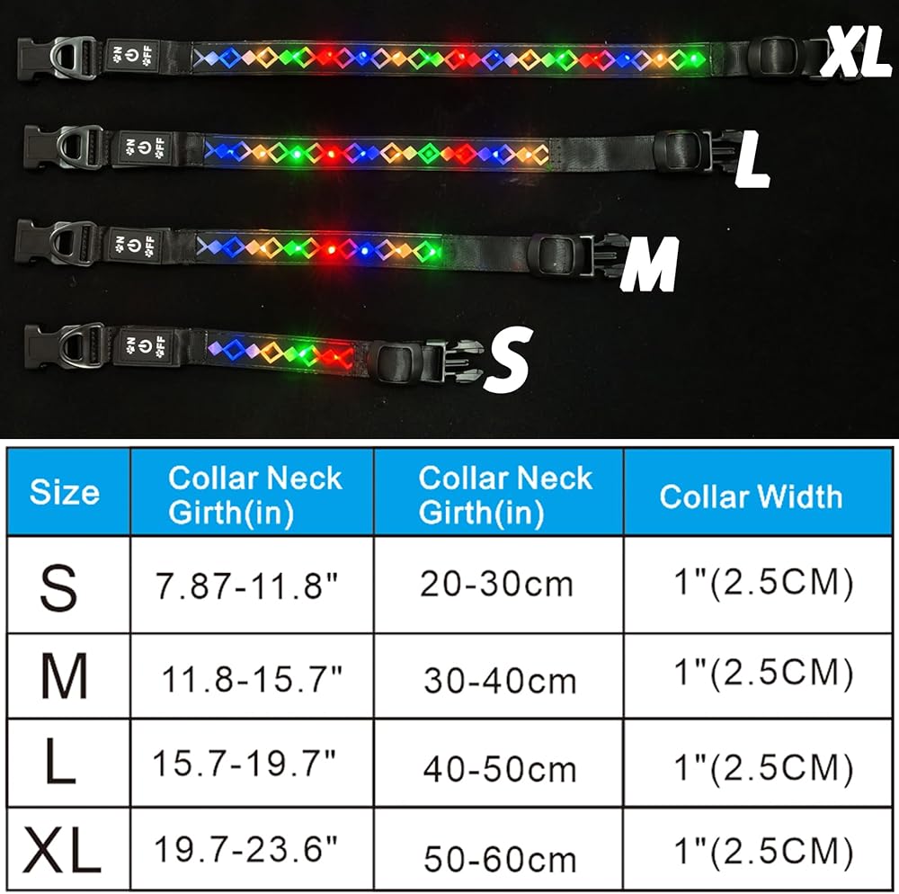 4 modes :the light up dog collar have 4 modes , Running flash ==> slow flash =====> quick flash ====light on ====> off