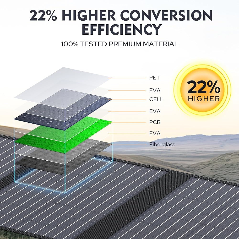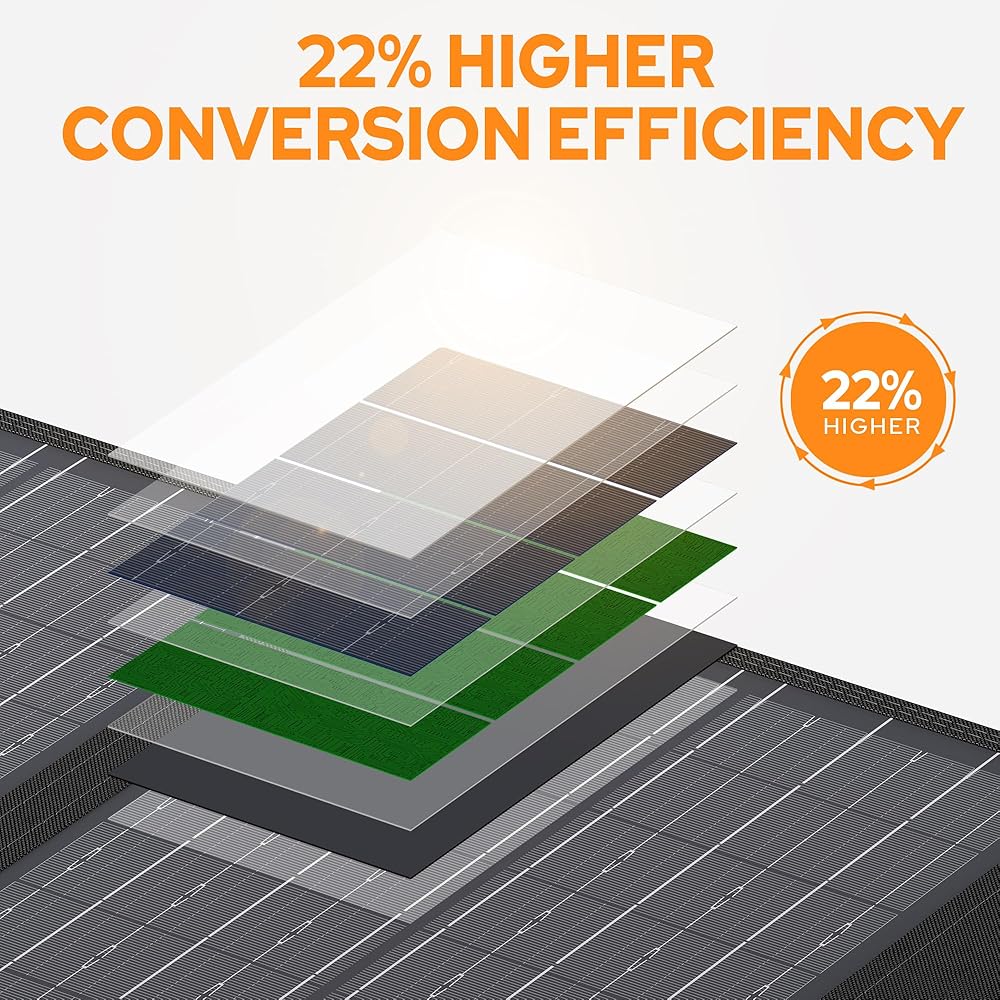 HIGH CONVERSION EFFICIENCY: With a 22% high conversion efficiency of this 60W monocrystalline solar panel, it produce electricity in a low light outdoor environment.