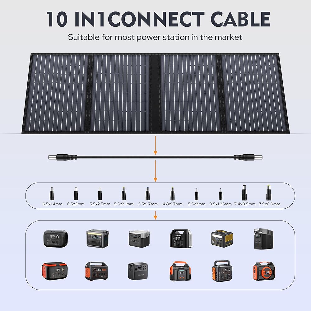 MADE FOR SOLAR GENERATOR: EnginStar 60W solar panel comes with 10*DC adapters, compatible with most solar generators and portable power stations on the market. Perfect for outdoor life and unexpected power outages.