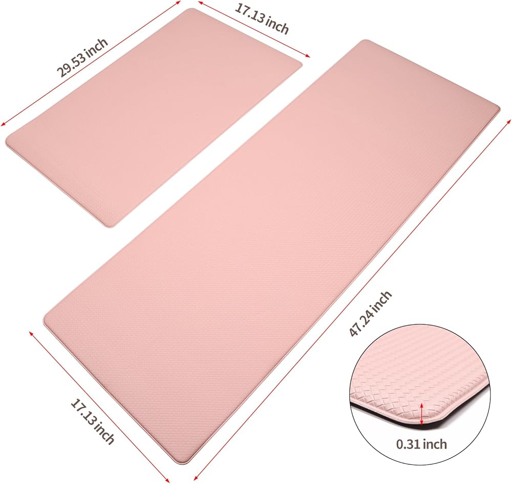 Kitchen Rugs Set: 2 Set of kitchen rugs and mats set measure 17"x47" and 17"x29"and the thickness is 0.31 inches (8mm). Different sizes of kitchen floor mats can be selected according to different areas