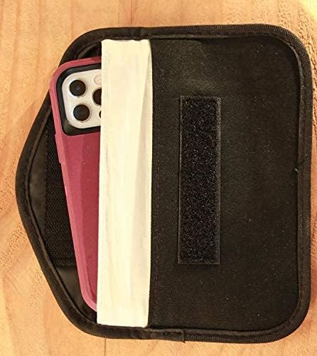 EMF/RFID blocking pouch. Made with RadFab radiation blocking fabric, this phone case can prevent your phone from getting calls, pinging GPS, or irradiating you. Fits mobile phone, passports, credit cards, currency, portable hard drives, and other sensitive materials. Made with 2 pockets. Pocket 1 fully encompasses your phone preventing it from sending or receiving signals. Pocket 2 has protection only on one side so you can keep your phone in your pocket with a barrier between it and your body while still allowing your phone to interact with local networks, bluetooth devices, getting calls, etc. Outer fabric made from durable canvas. Inner fabric made with conductive silver RadFab Pocket size approx. 5x7.75 inches. RadFab special fabric made with micro threads of pure silver perfectly surrounding a flexible elastic core (70% Silver fiber, 30% Chinlon, The silver fabric has a high conductivity (~2 Ohm per sq) while the exterior has low conductivity (~109 Ohm per sq). Exceptional shielding performance (40-50dB (more than 99.99%) over at least 10MHz to 4GHz with >99% performance between 50 HZ and 10GHz.