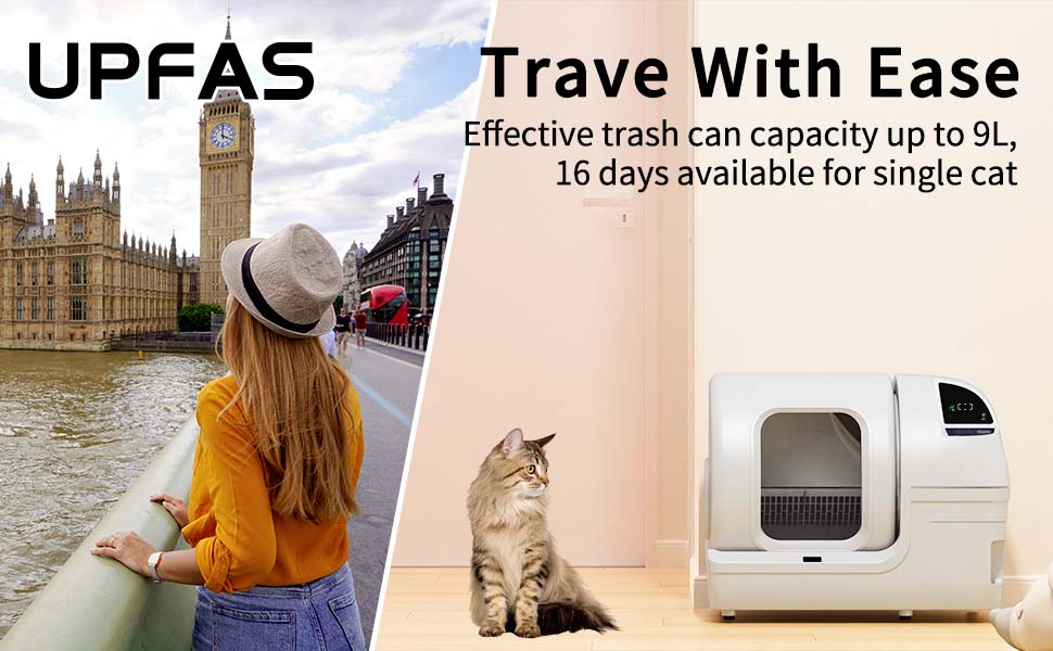 Versatile Compatibility and Dual Deodorization:Compatible with various clumping cat litters, including clay, tofu, mixed, and mineral-based litters (maximum length of tofu litter should not exceed 8mm), the UPFAS litter box features a 100% sealed waste bin and deodorizer to trap odors effectively. The automatic door design and specialized litter scoop kit further enhance odor control and cleanliness, making it ideal for intermittent cleaning of automatic litter machines.