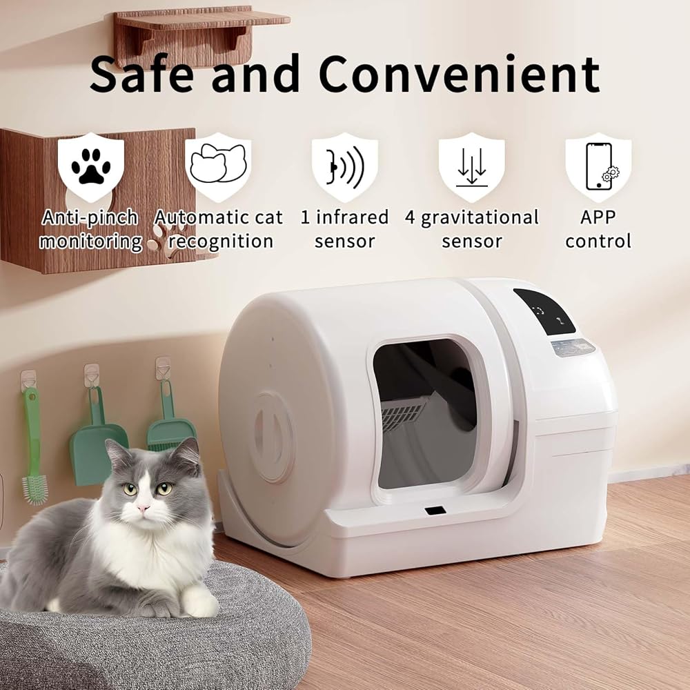 Safety and Reliability:Equipped with multiple high-precision sensors and anti-pinch motors, the UPFAS self-cleaning litter box prioritizes the safety and well-being of your cat. It automatically pauses cleaning cycles when detecting proximity or weight changes, ensuring a secure toilet experience for cats weighing between 2.0 to 25 pounds.