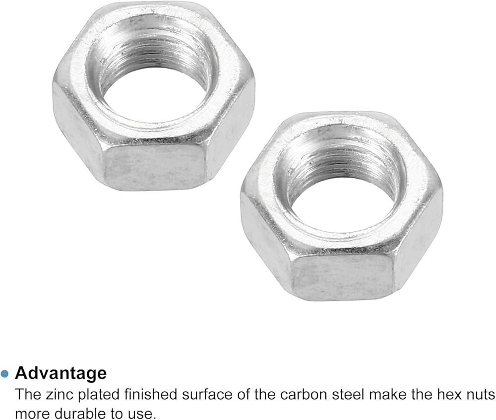 The zinc plated finished surface of the carbon steel make the hex nuts more durable to use.