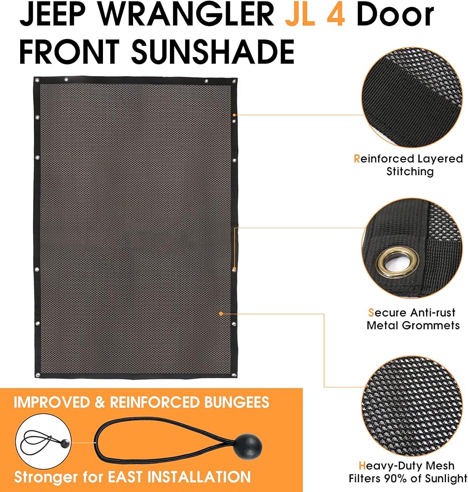 Wind Breaker and Noise Reductor - Durable woven PVC mesh reduce the wind and noise quite a lot while driving,meanwhile keep out the leaves and small stones to make your jeep clean and passengers safe while jeep on the gravel driveway.