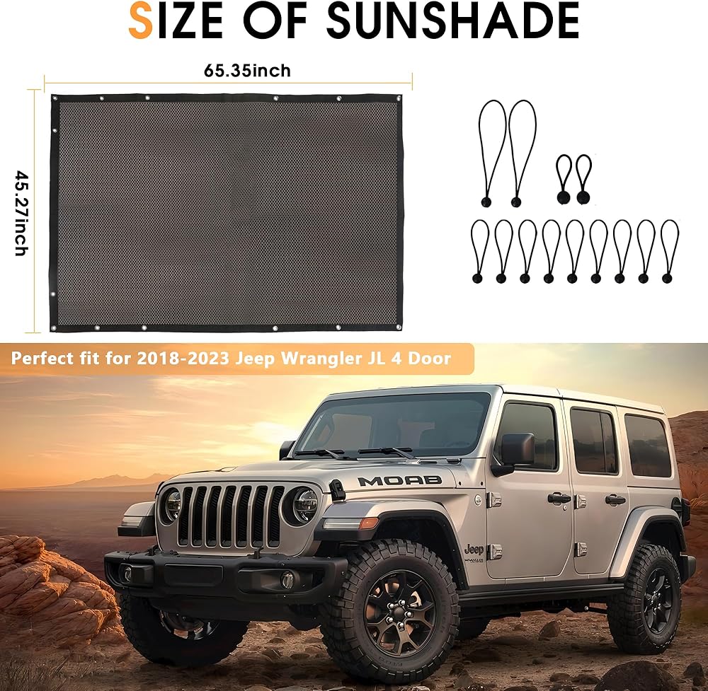 Fitment - Fit on 2018-2023 Jeep Wrangler JL JLU 4-Door, our sunshade for jeep even works with your hard top or soft top so you never need to remove it.