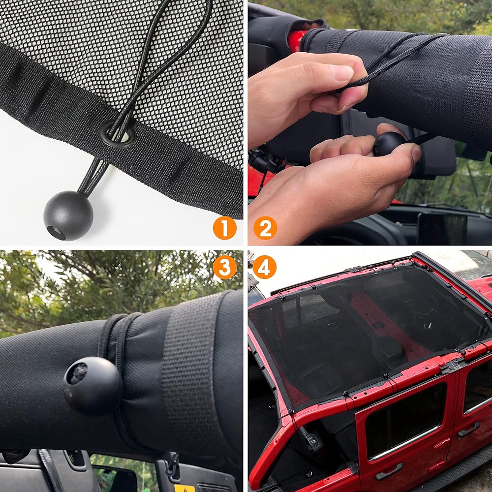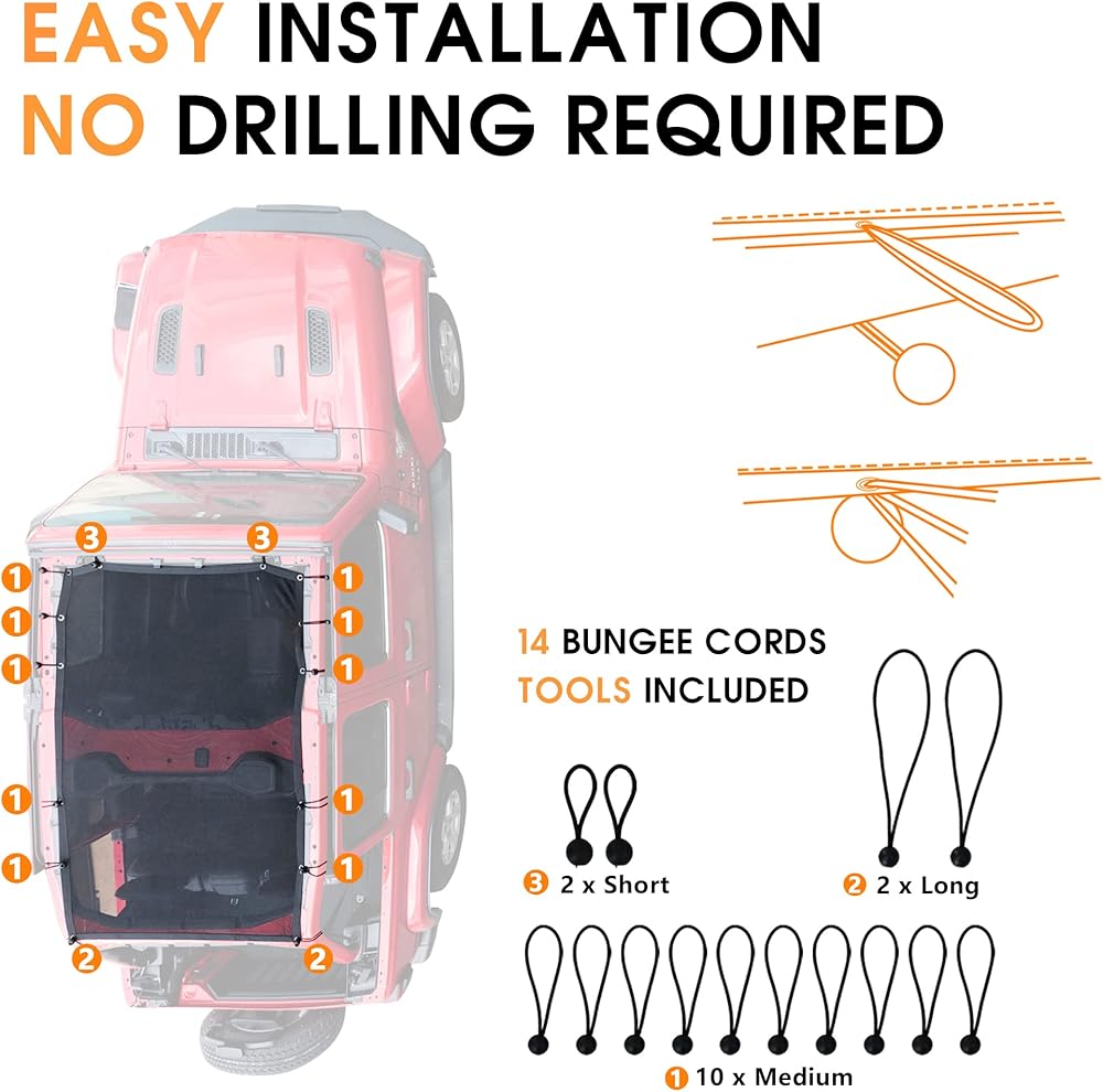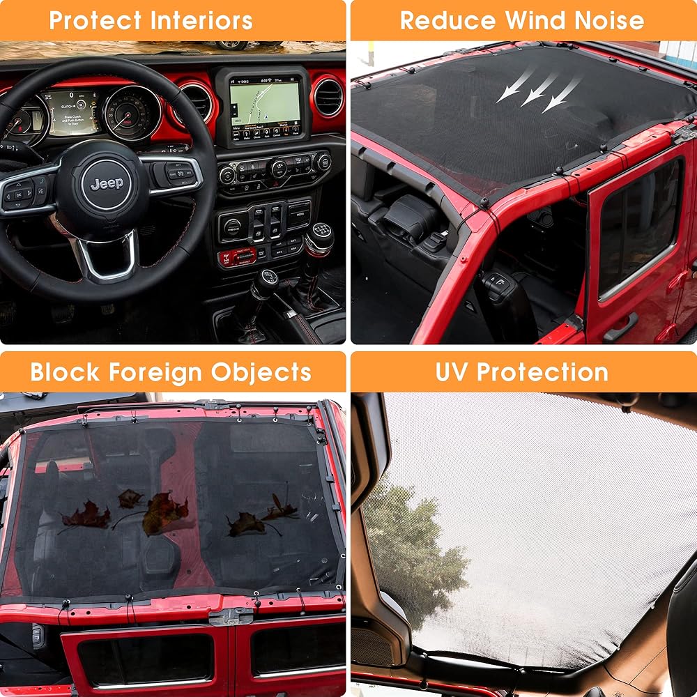 UV Protection - Protect your passengers and your Jeep interior from sun rays harmful, Keeping brightness to make your eyes comfortable. Durable woven PVC mesh cuts down on wind noise while reducing exposure.