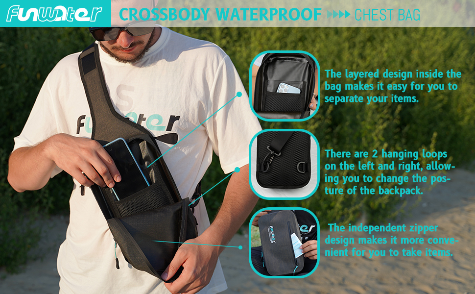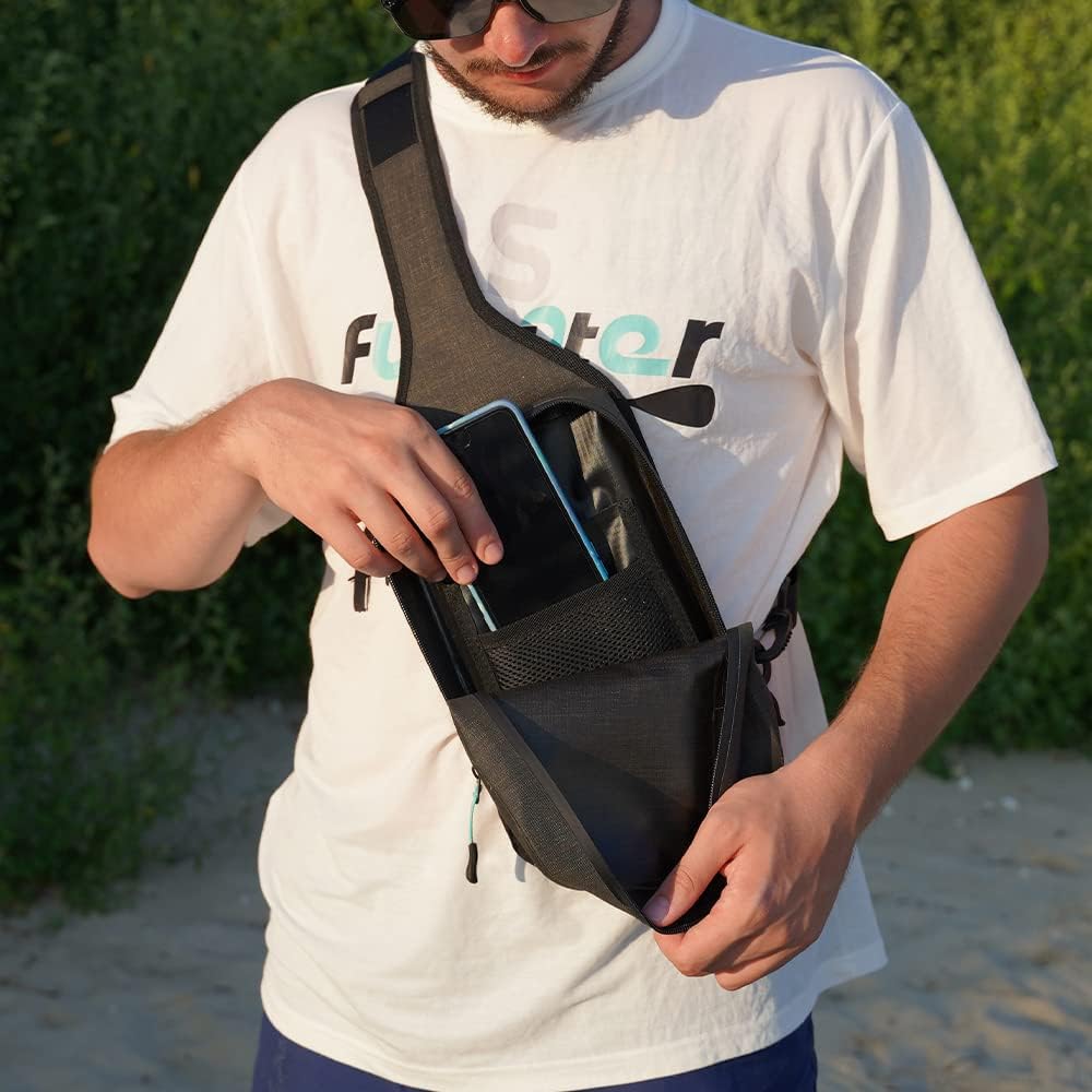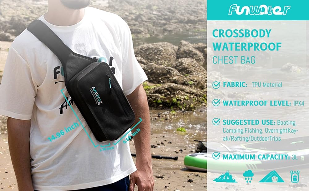 FunWater Waterproof Sling Backpack Crossbody Backpack for Men Women Marine Dry Bag for Travel Kayaking, Surfing, Boating, Hiking Black Color Chest Bag Daypack 3L