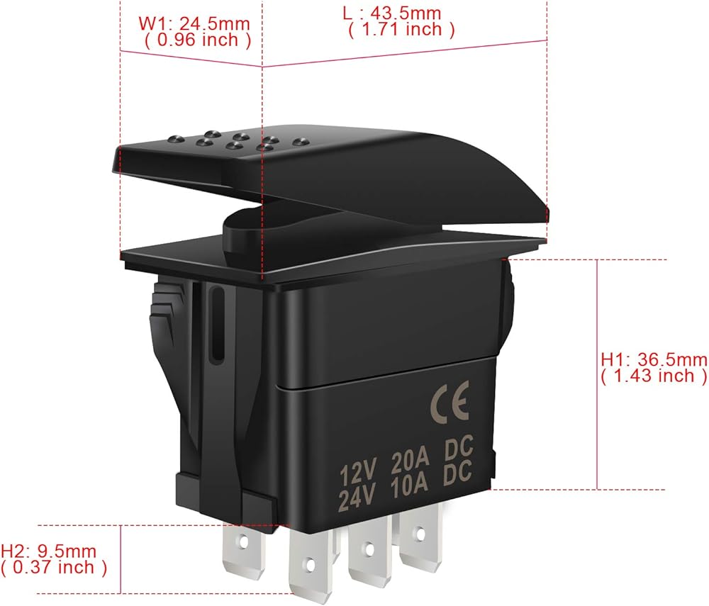 1 x 12V/24 Volt ON/OFF/ON Rocker Switch