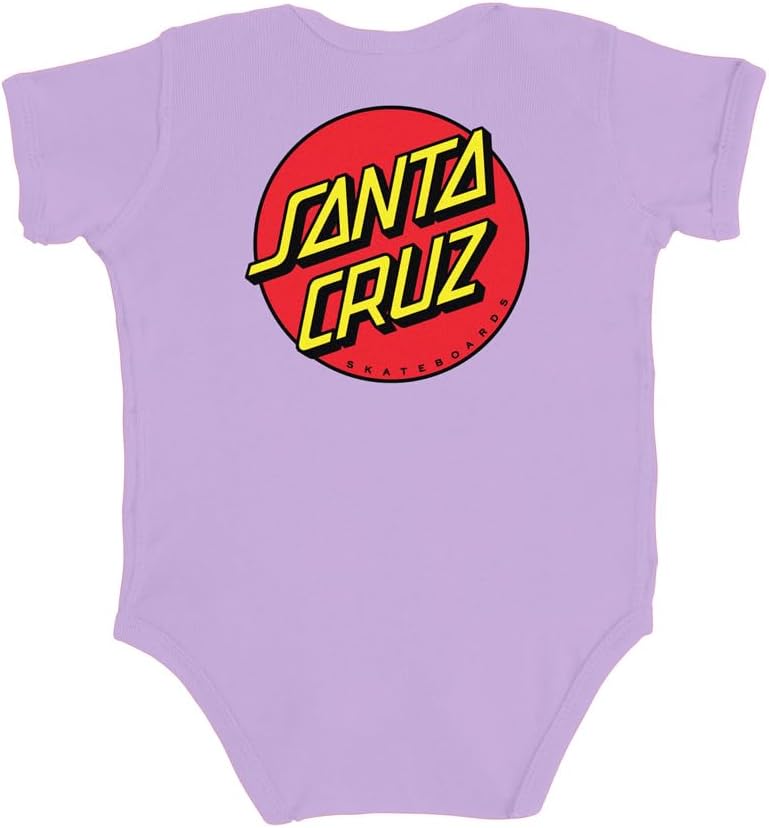 Classic Dot Design: The Santa Cruz Classic Dot S/S One Piece T-Shirt boasts both front and back Classic Dot logos, showcasing the iconic Santa Cruz skateboarding aesthetic for infants.