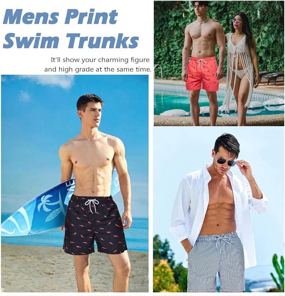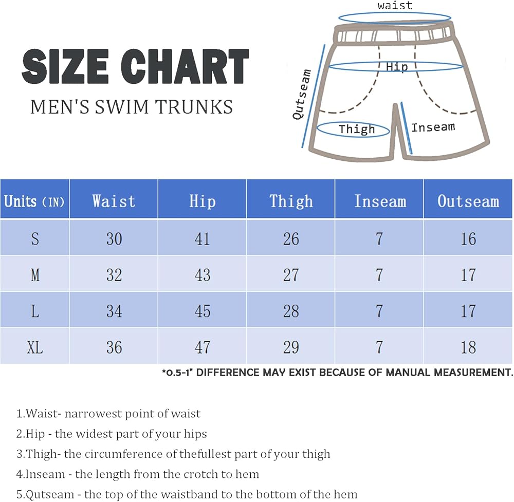 【Classic Design】this mens board shorts swimwear Size from S to XL, the inseam is 7 inch, regular fit shorts are suitable for most men, it never goes out of style. The lined swim trunks with elastic waist, drawstring and 2 side pockets.
