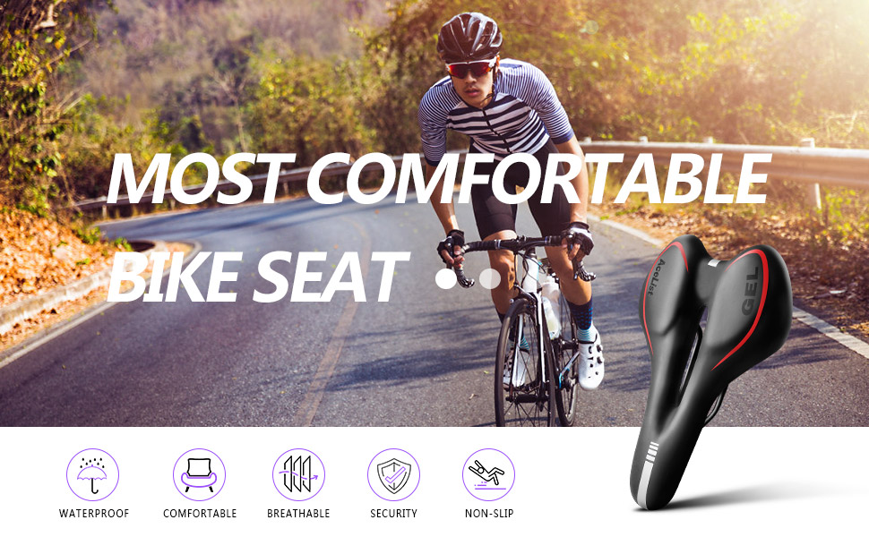 【Excellent shockproof and maximum firmness】 Double stainless-steel rails and highly resistant shell under the bike saddle provides strong shock absorption effect and better protection. The middle cutout can increase air circulation and reduces the riding pressure, makes your bike trips easier and more comfortable.